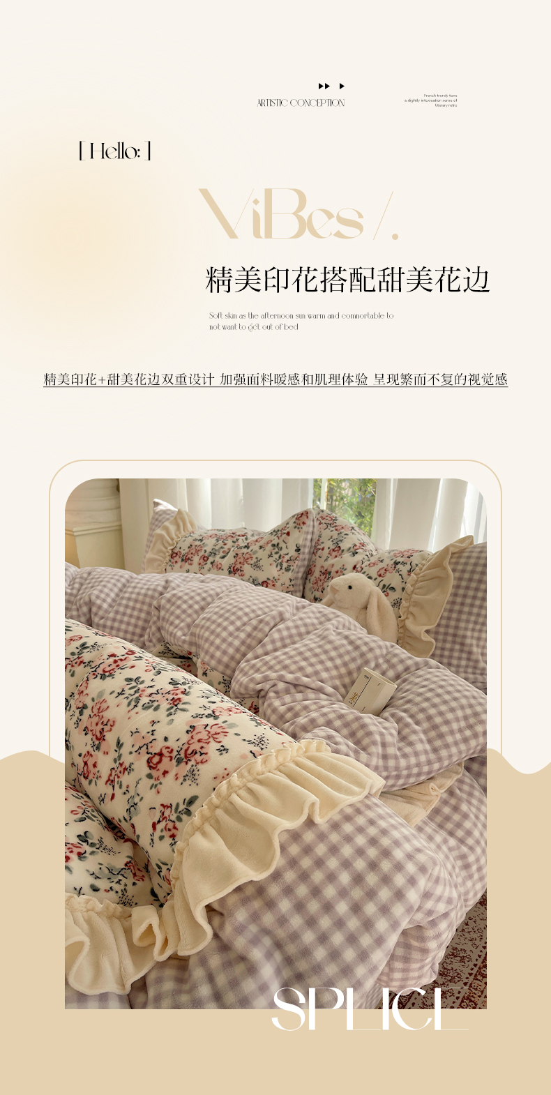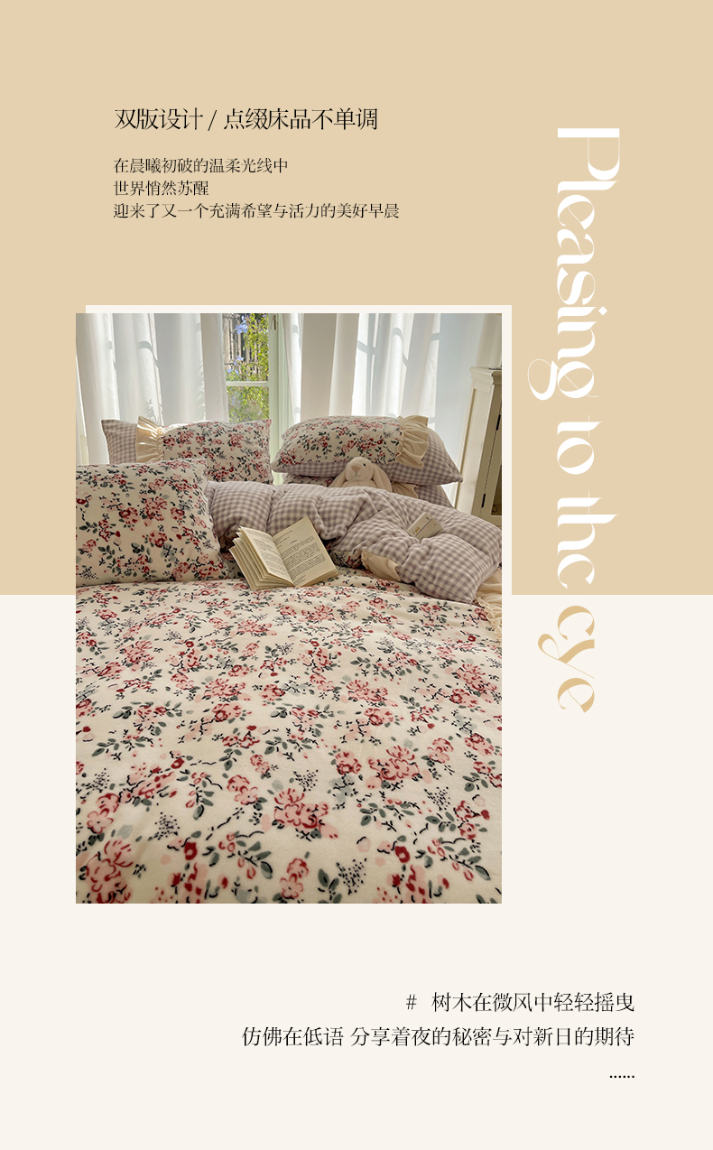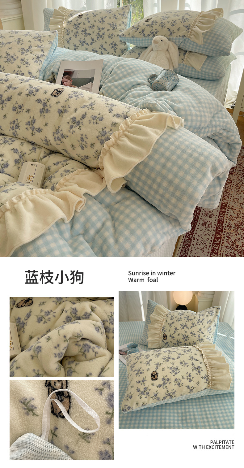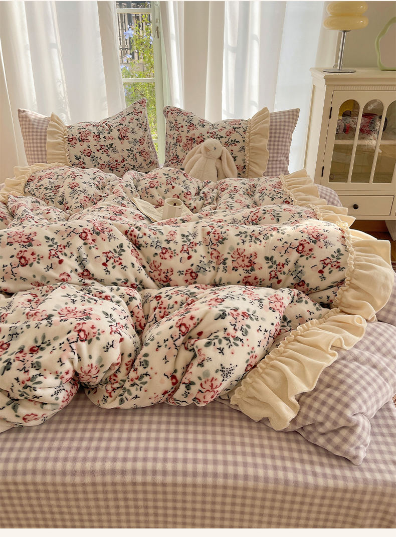 商品名称:瑞莱 (持续上新)2025冬季新款拼接款花边牛奶绒四件套 雪中梅