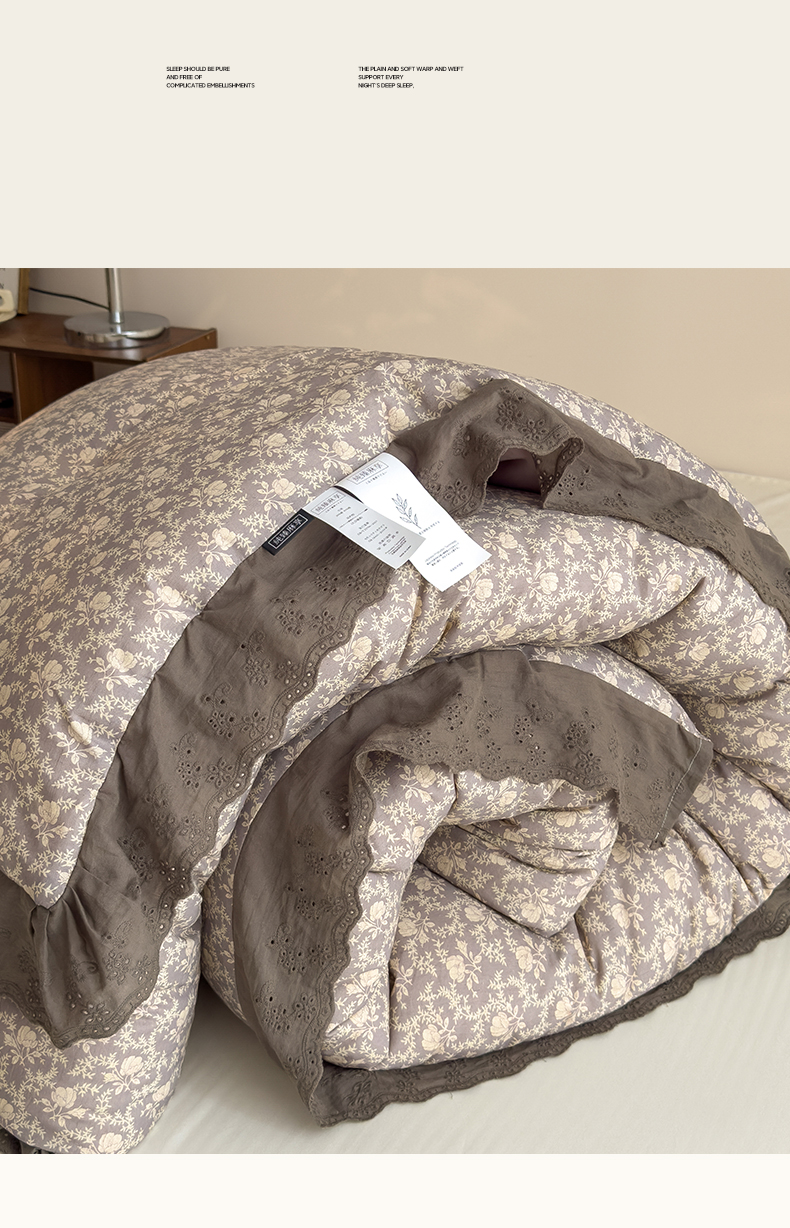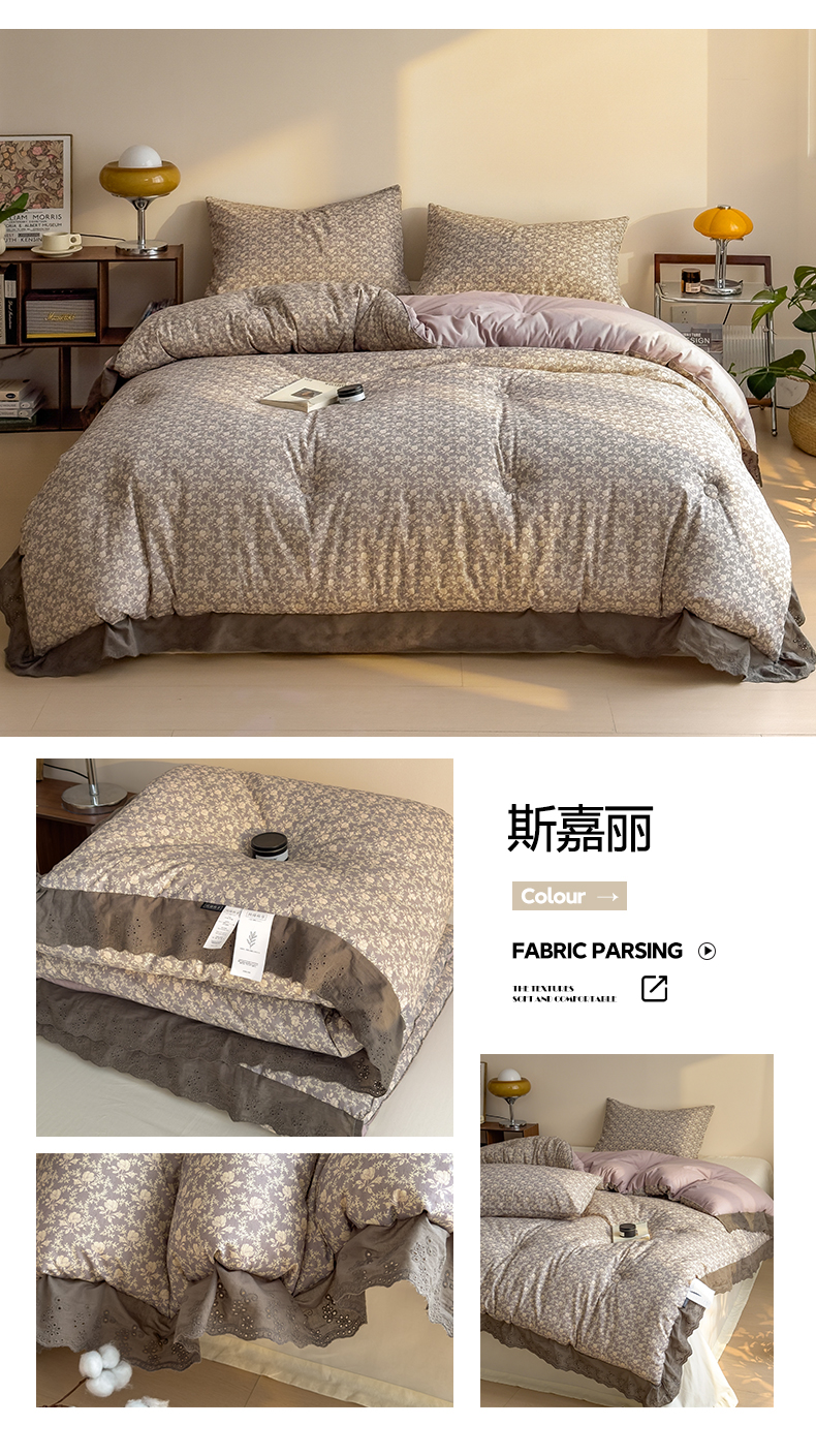 • 91家纺网 家纺一手货源 找家纺 (总)米菲 2025新款全棉双层纱花边被被子被芯,初春,简约格调,南枝