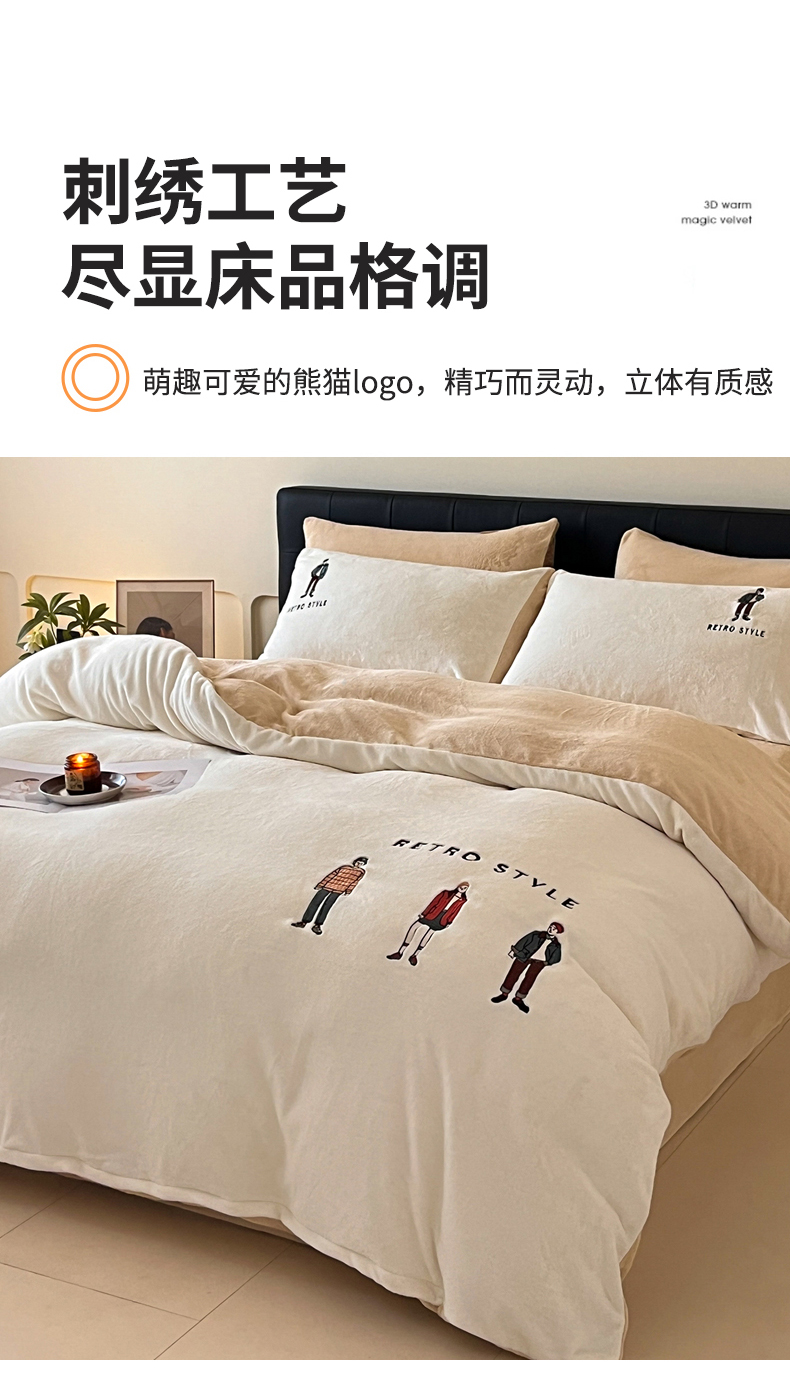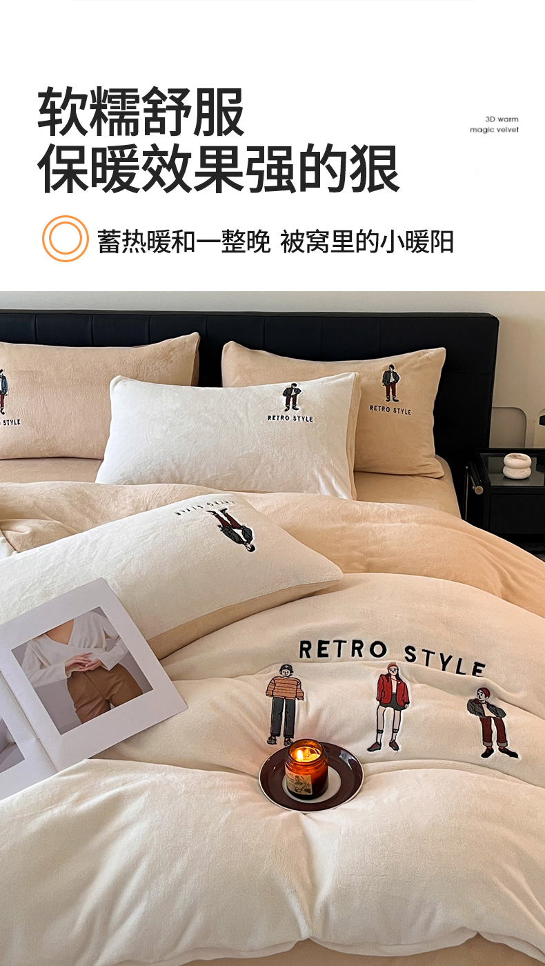 当前位置: 91家纺网 > 商品网购 > 床品套件 > 四件套 > 牛奶绒四件套 > ONE TWO ONE 121 新品【牛奶绒刺绣四件套】2025毛毯被子四件套单件床单被套床笠珊瑚绒牛奶绒冬被法兰绒兔毛绒男孩Boy Boy-烟紫