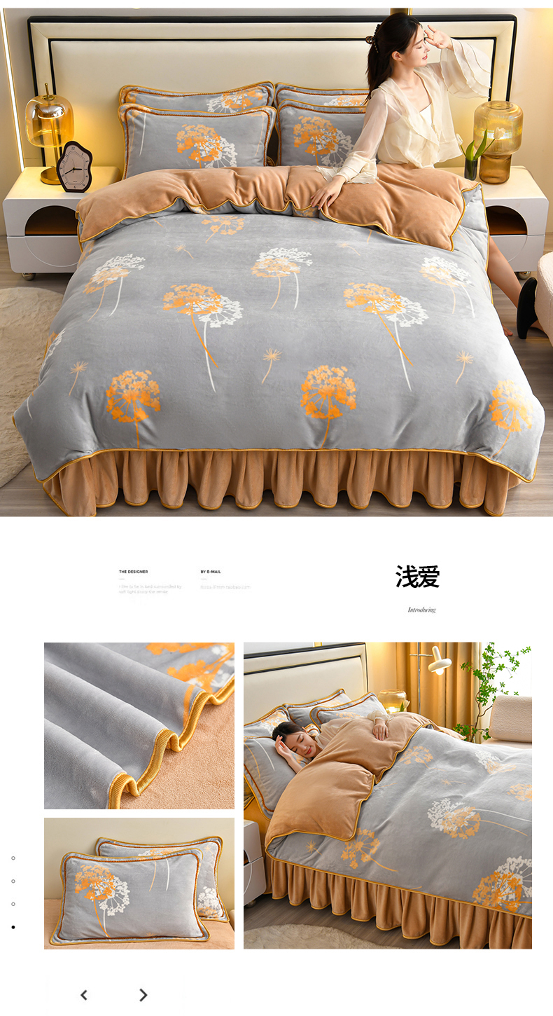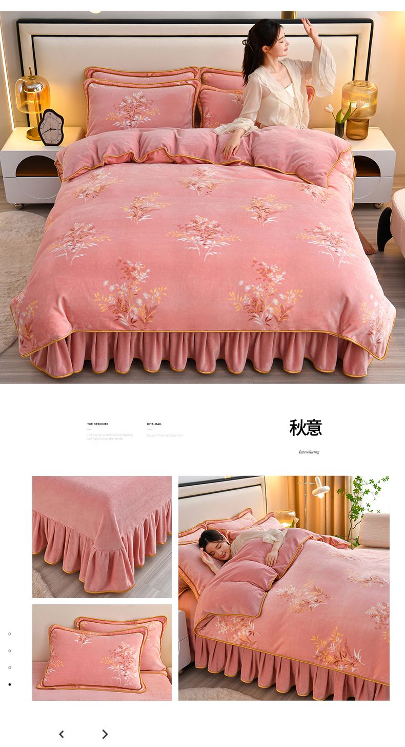 (总)橘姿 2025新款8-9斤床裙款牛奶绒四件套金貂绒法兰绒宝宝绒,蝶舞花香,芳颜,荷塘月色,简约时尚,静若幽香,乐薇花园,玫瑰情缘,鹿之恋,天生一对,邂逅,心相印,一鹿有你,时尚潮流,银杏叶语,爱恋粉,爱情花语,爱语,爱之依恋,百合情缘,发财树,富贵牡丹,花香怡人,花样情怀,花语,欢乐兔,蓝大格,浪漫甜心,暖意,青花瓷韵,情人草灰,深林麋鹿,时尚豹纹,时尚小熊,相爱一生大红,心动萌宝,幸运树,叶叶枫情,一叶倾心,英伦时尚,在一起