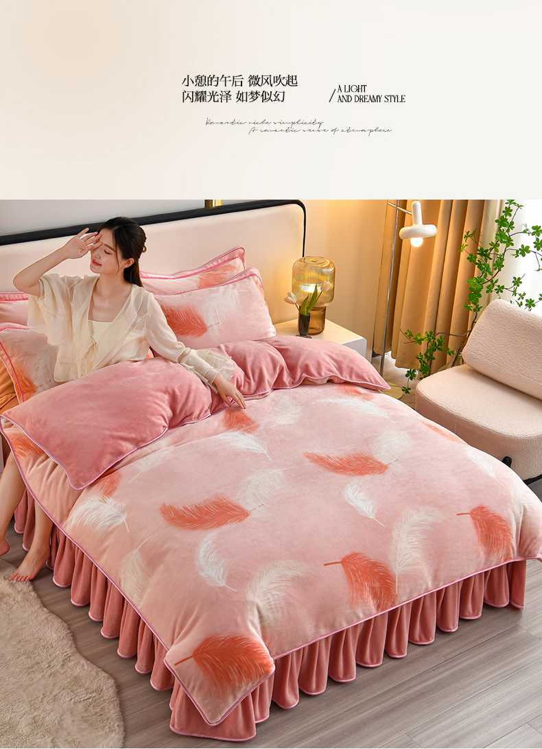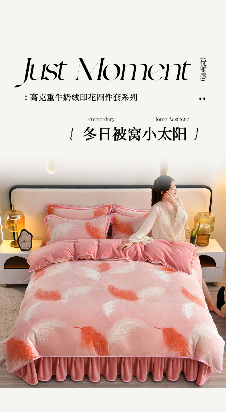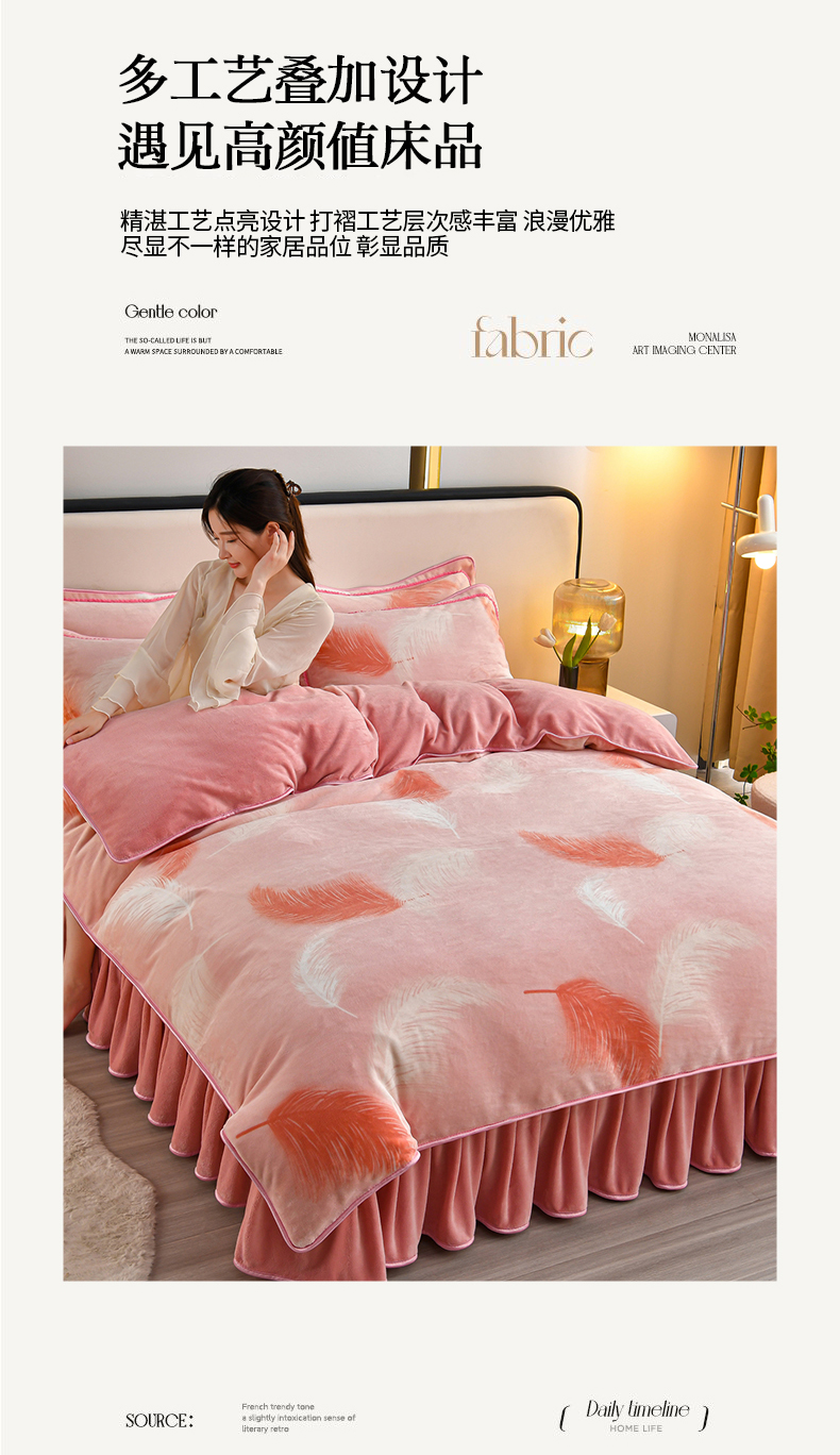 (总)橘姿 2025新款8-9斤床裙款牛奶绒四件套金貂绒法兰绒宝宝绒,蝶舞花香,芳颜,荷塘月色,简约时尚,静若幽香,乐薇花园,玫瑰情缘,鹿之恋,天生一对,邂逅,心相印,一鹿有你,时尚潮流,银杏叶语,爱恋粉,爱情花语,爱语,爱之依恋,百合情缘,发财树,富贵牡丹,花香怡人,花样情怀,花语,欢乐兔,蓝大格,浪漫甜心,暖意,青花瓷韵,情人草灰,深林麋鹿,时尚豹纹,时尚小熊,相爱一生大红,心动萌宝,幸运树,叶叶枫情,一叶倾心,英伦时尚,在一起