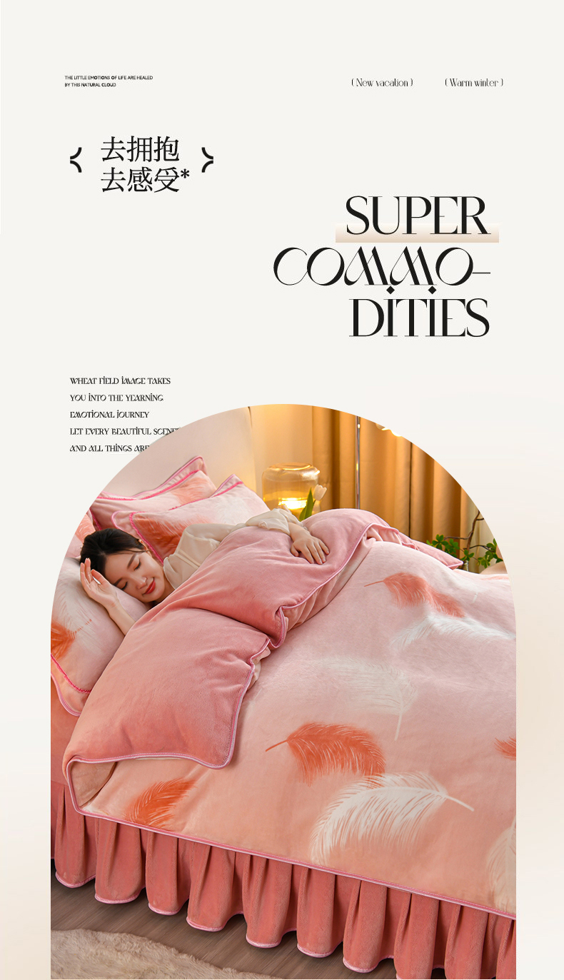商品名称:橘姿家纺 2025新款9-10斤牛奶绒四件套金貂绒四件套 瑞夫丽