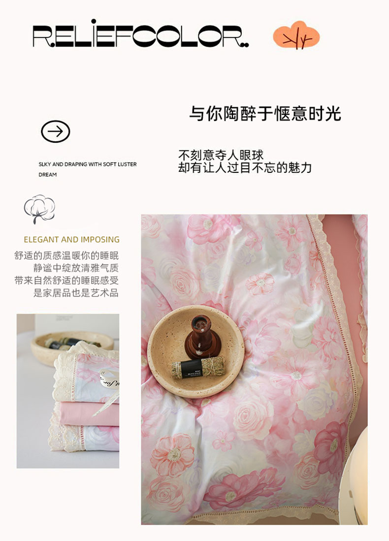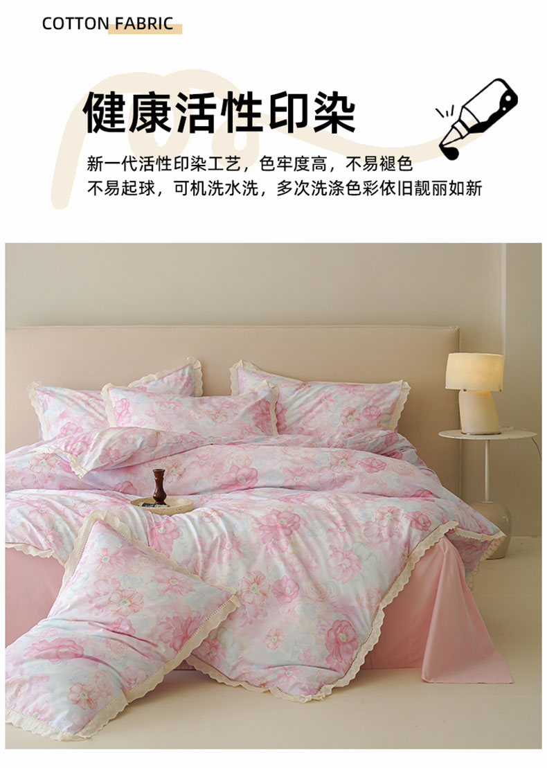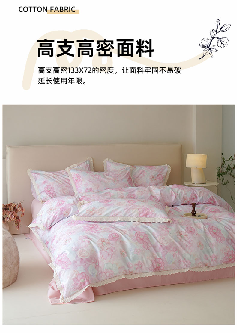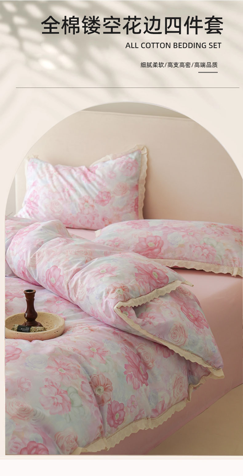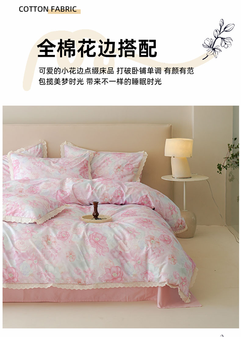 商品名称:洺兰家居 2025年小清新全棉13372镂空花边小碎花ins风水洗棉四件套 扶摇