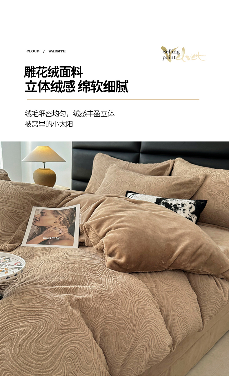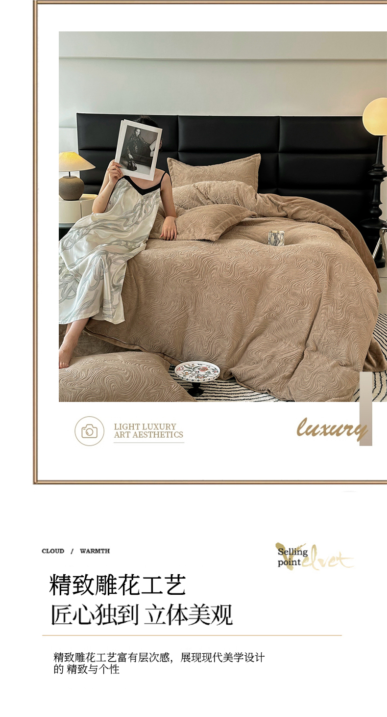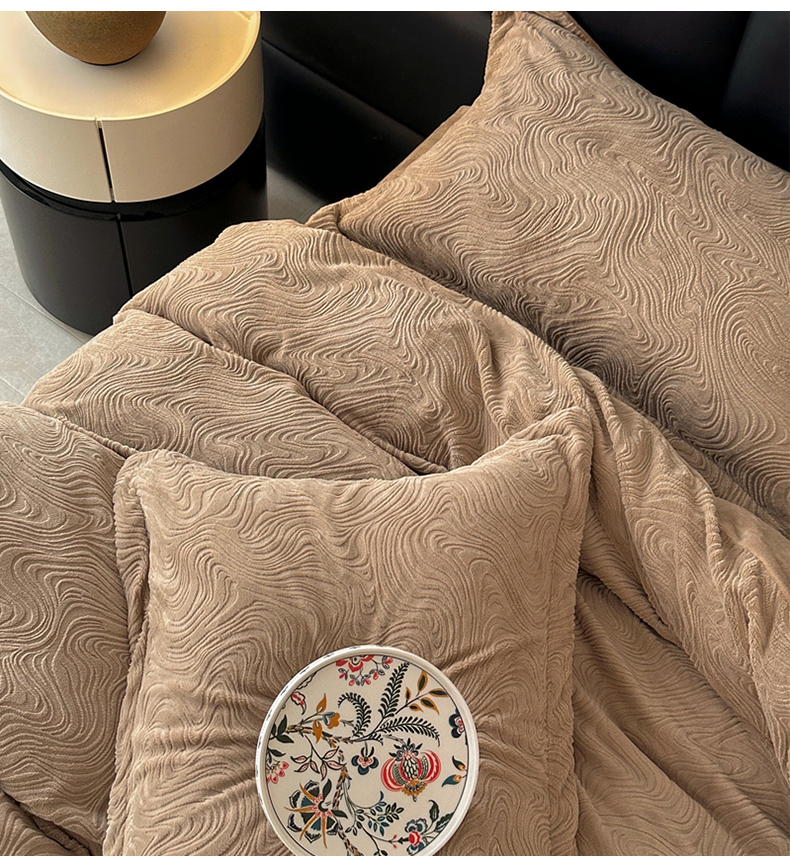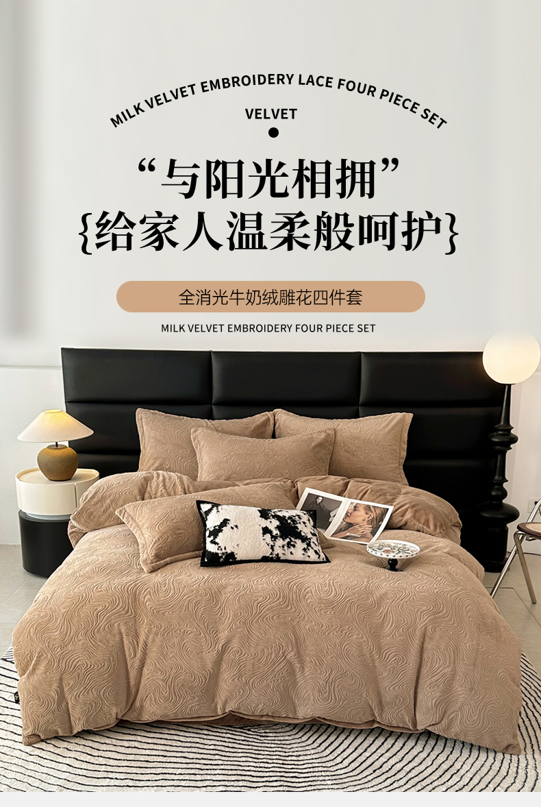 金绣美居 2025新款亲肤舒适全消光牛奶绒雕花四件套-黎境 黎境-菩提咖
