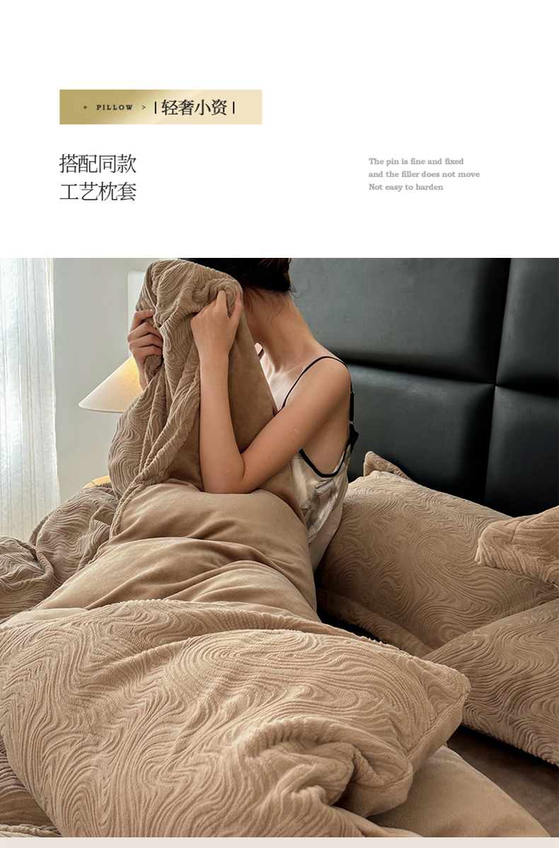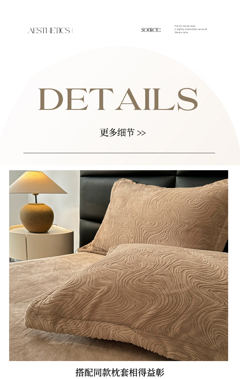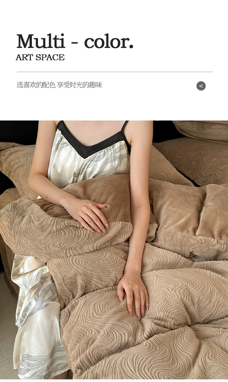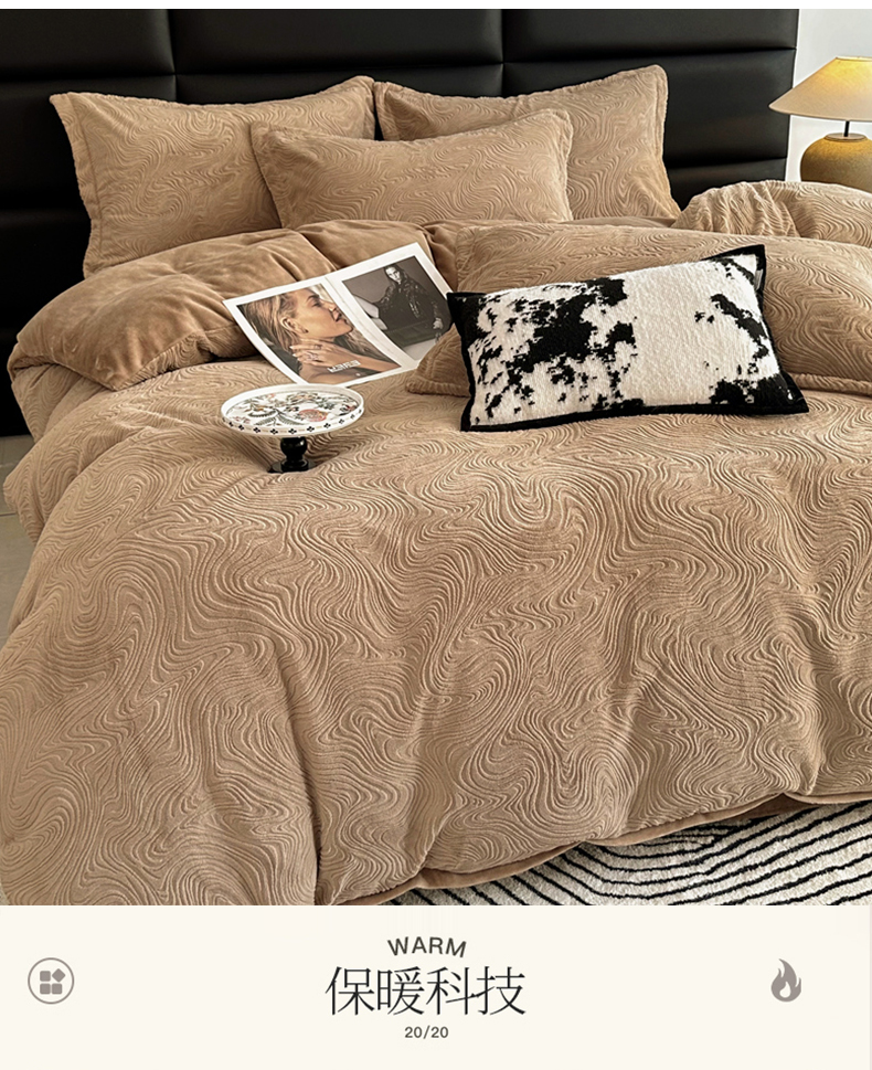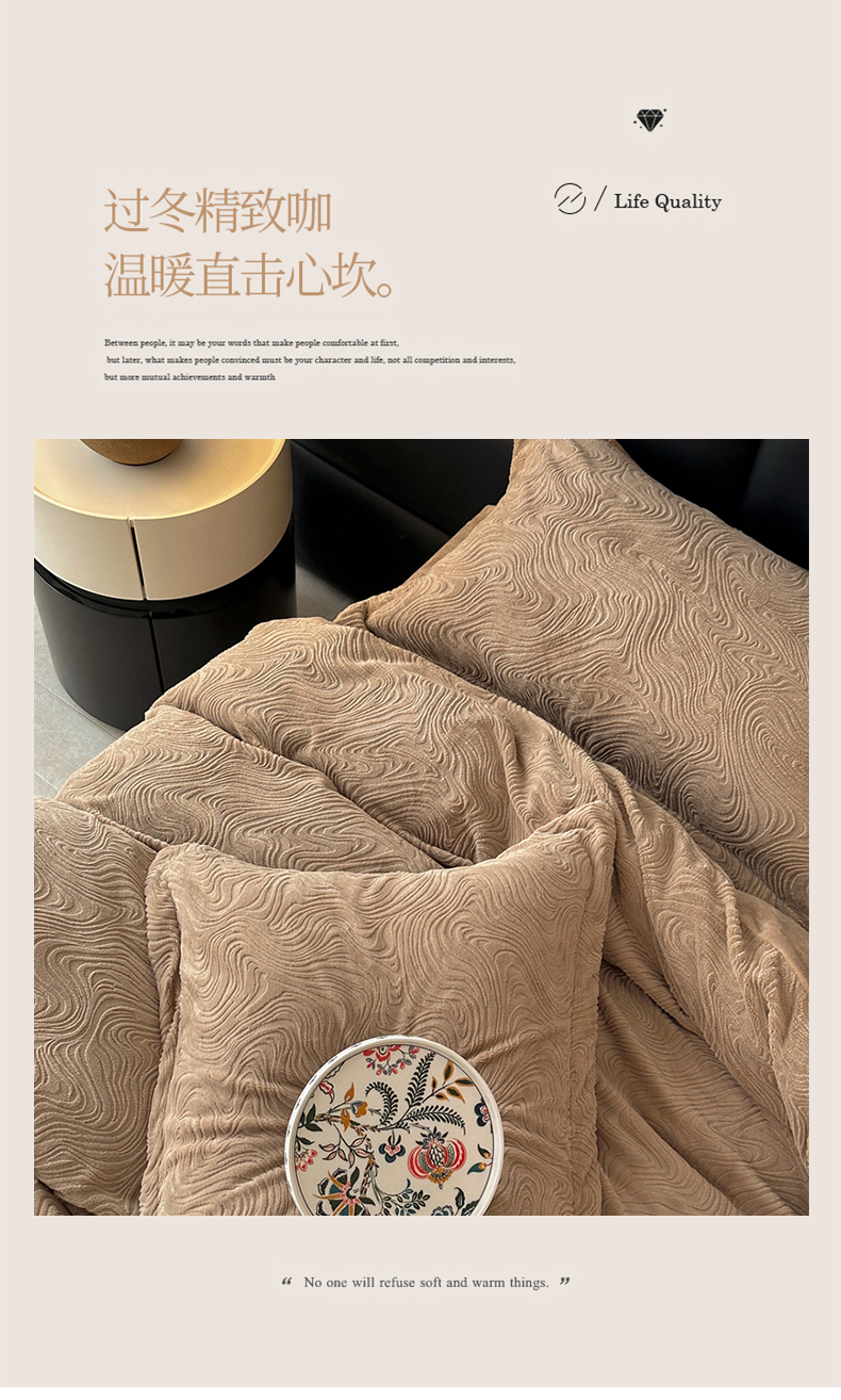 金绣美居 2025新款亲肤舒适全消光牛奶绒雕花四件套-黎境 黎境-菩提咖