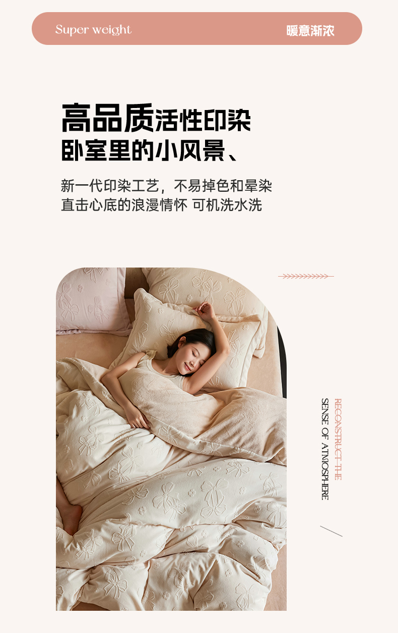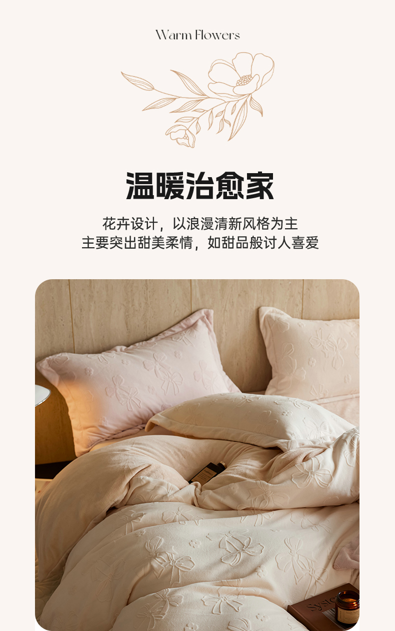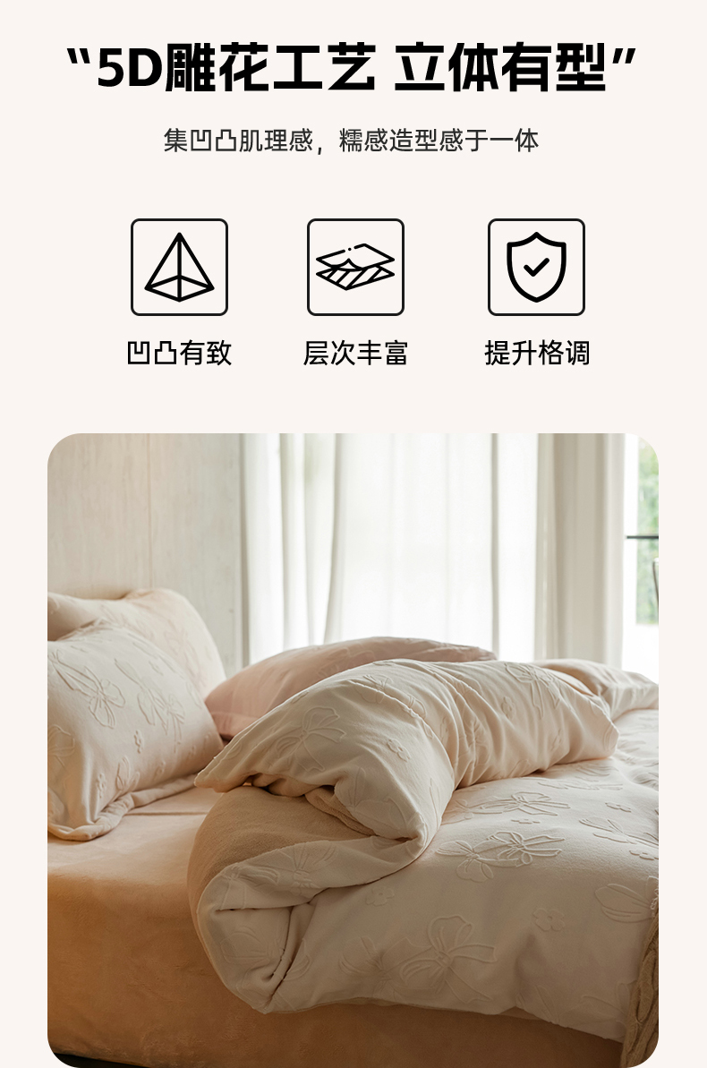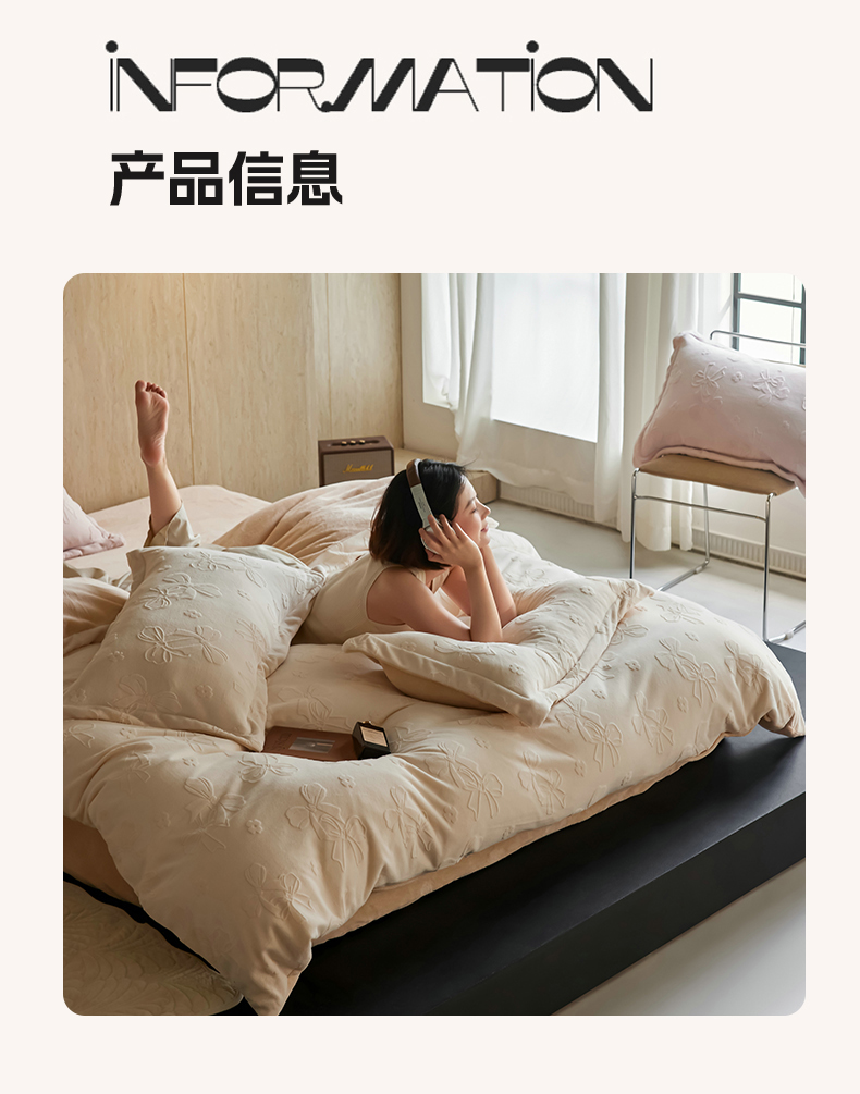 当前位置: 91家纺网 > 商品网购 > 床品套件 > 四件套 > 牛奶绒四件套 > 亿梵家居 2025秋冬新款A类全消光牛奶绒立体5D雕花绒四件套-风格一 (提供买家秀) 蝴蝶结-奶油白
