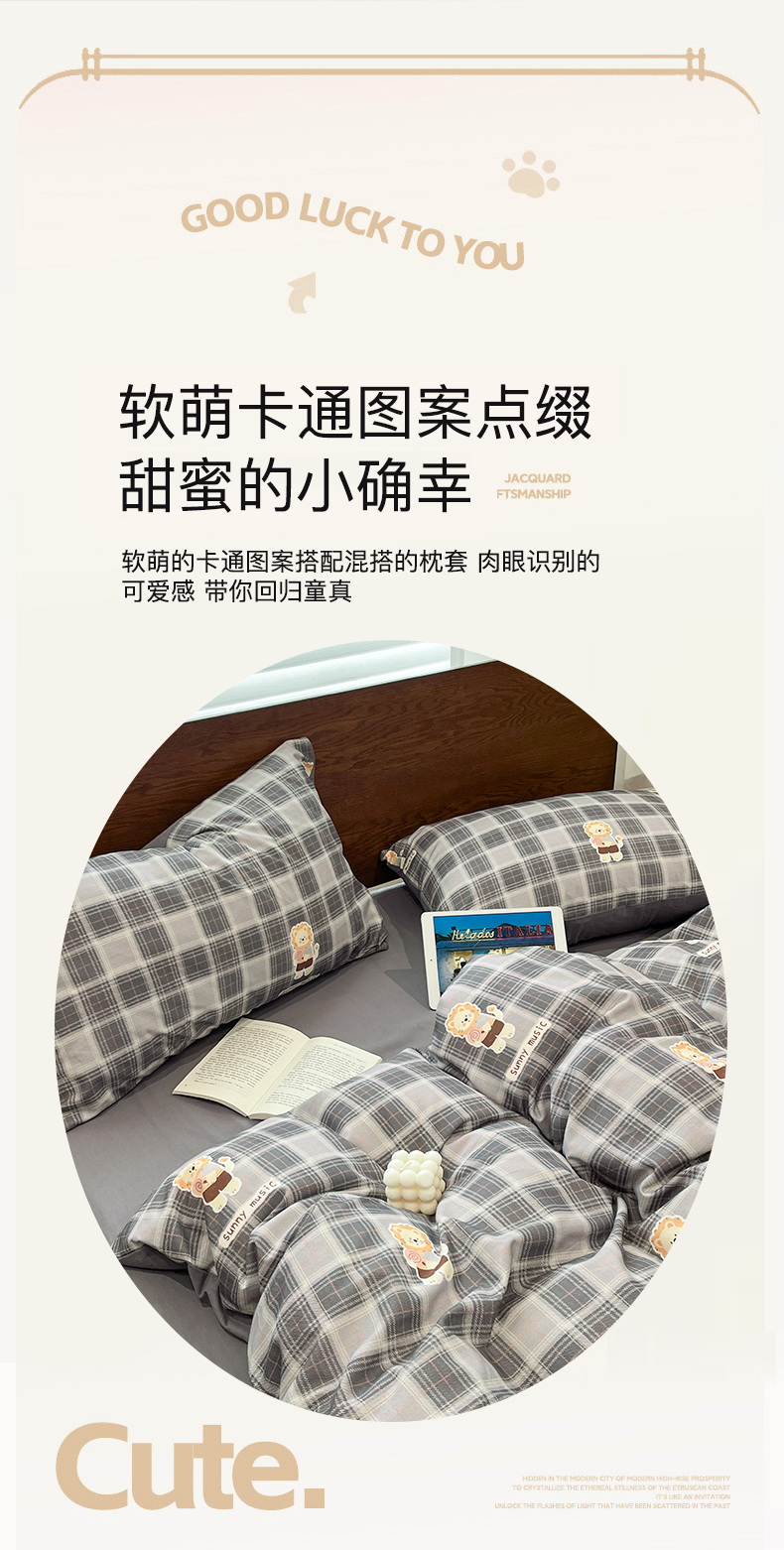 当前位置: 91家纺网 > 商品网购 > 床品套件 > 四件套 > 全棉普通四件套 > 小叮当家纺仓储工厂店 2025新款提供买家秀爆款花型不断货美拉德卡通全棉纯棉磨毛四件套 小萌狮