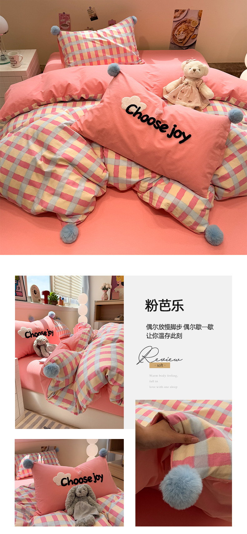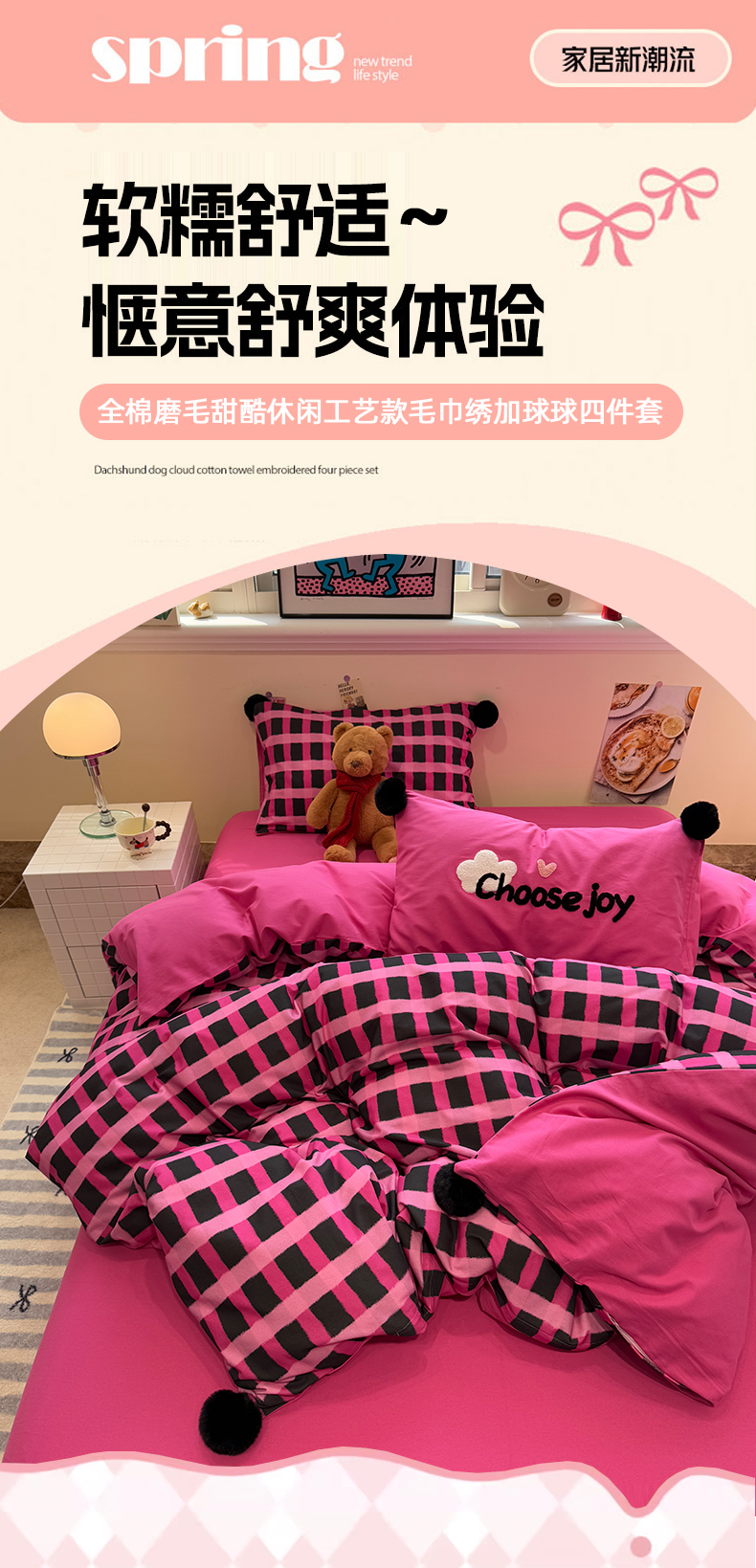 呗旺鹿 2025新款全棉磨毛球球工艺款四件套 海洋可可