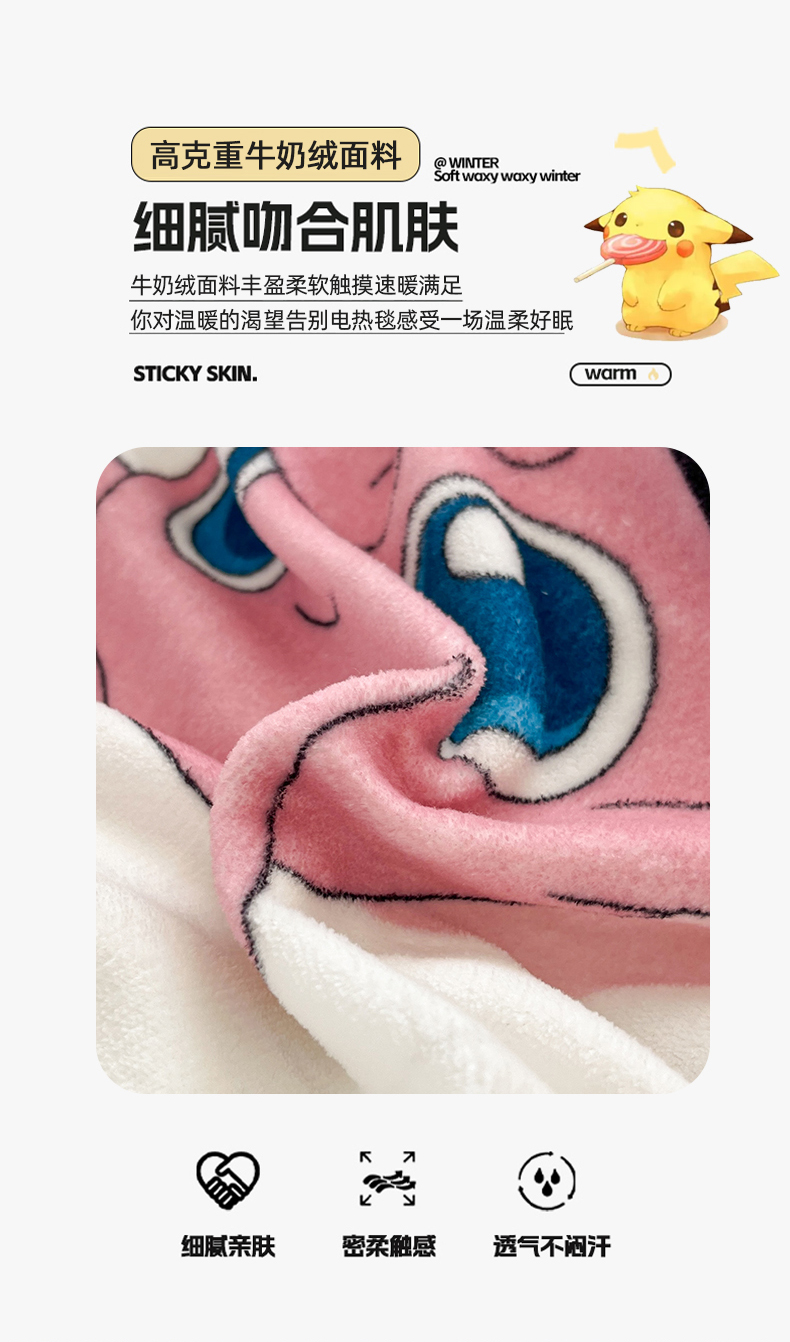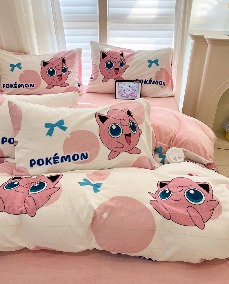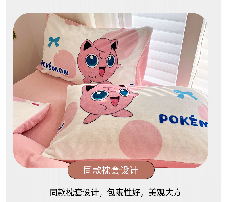 当前位置: 91家纺网 > 商品网购 > 床品套件 > 四件套 > 牛奶绒四件套 > 桃子家居 2025新款A类正版宝可梦授权皮卡丘大版卡通平网数码印花加厚高克重牛奶绒四件套 绒小版-蝴蝶结胖丁