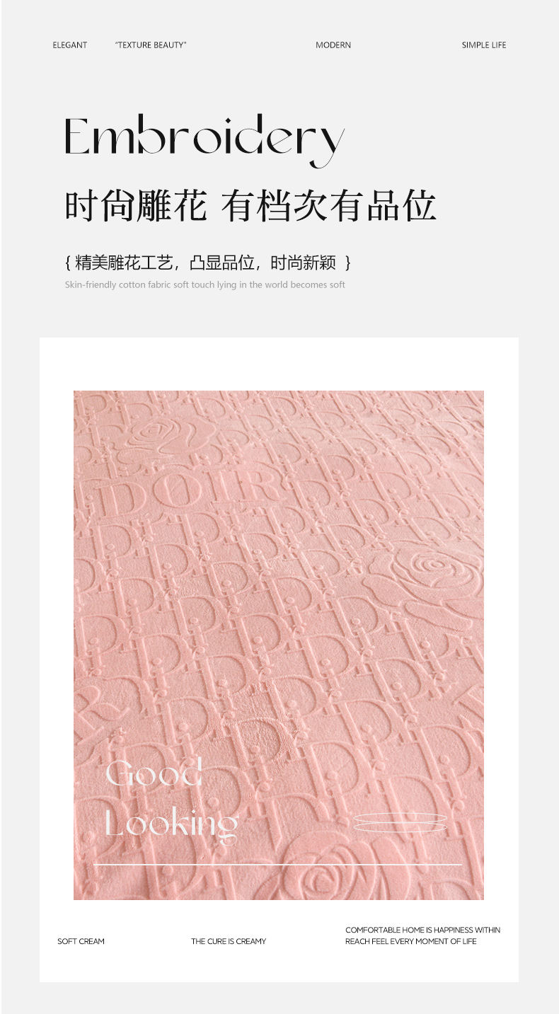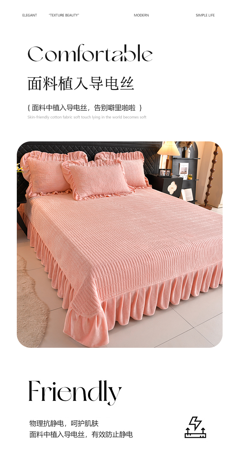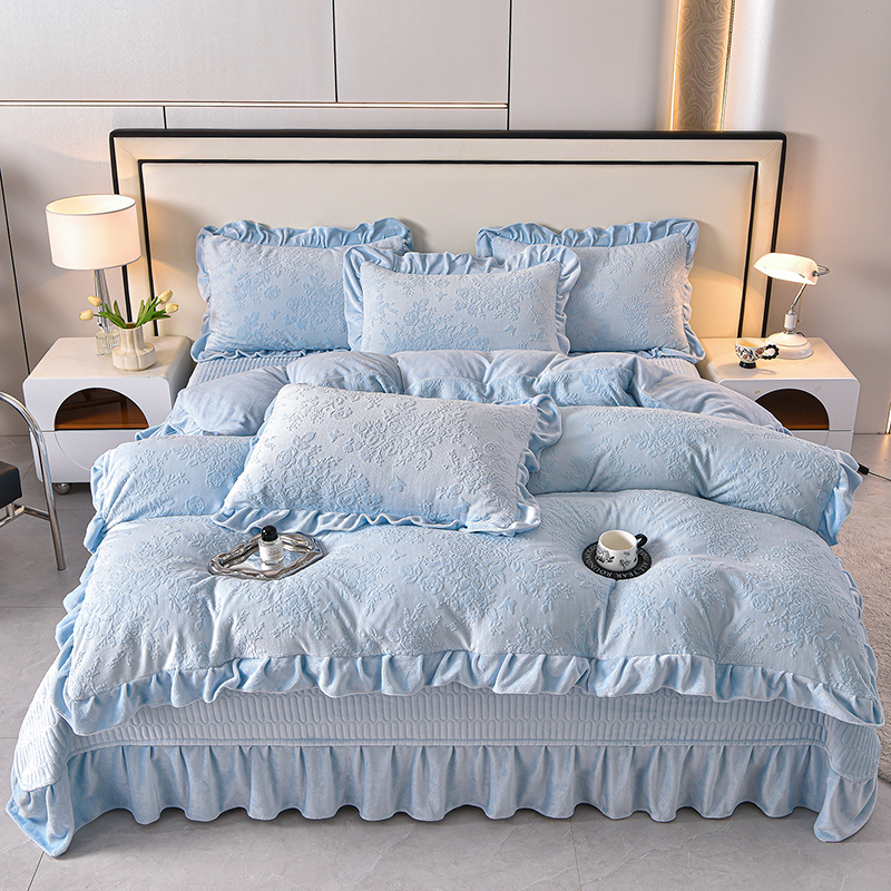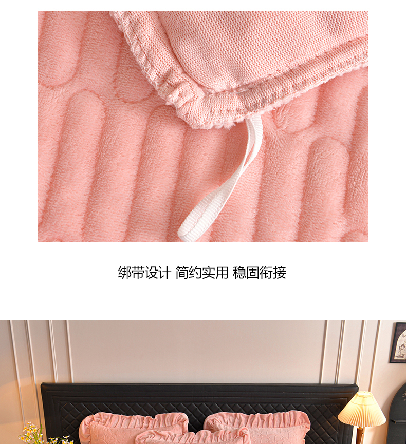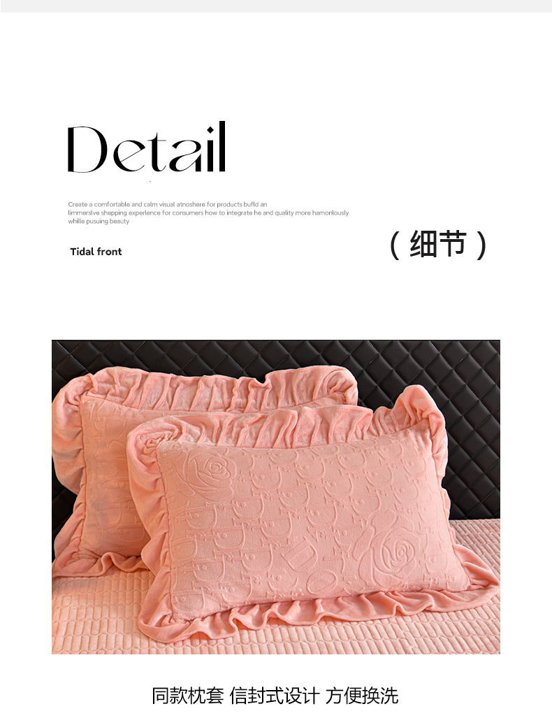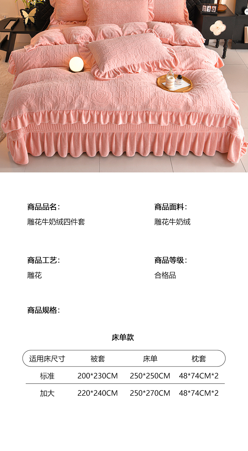 商品名称:(总)赫本家纺 2025新款高克重纯色花边款雕花绒床盖款四件套