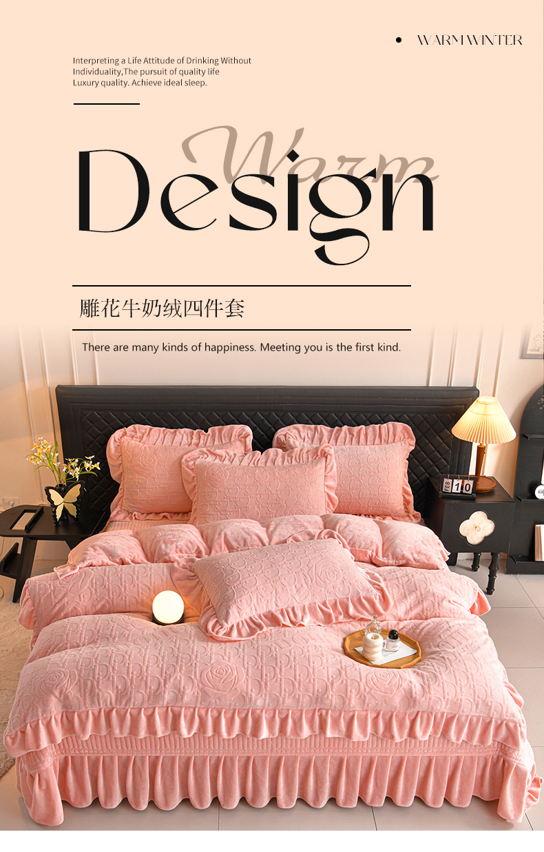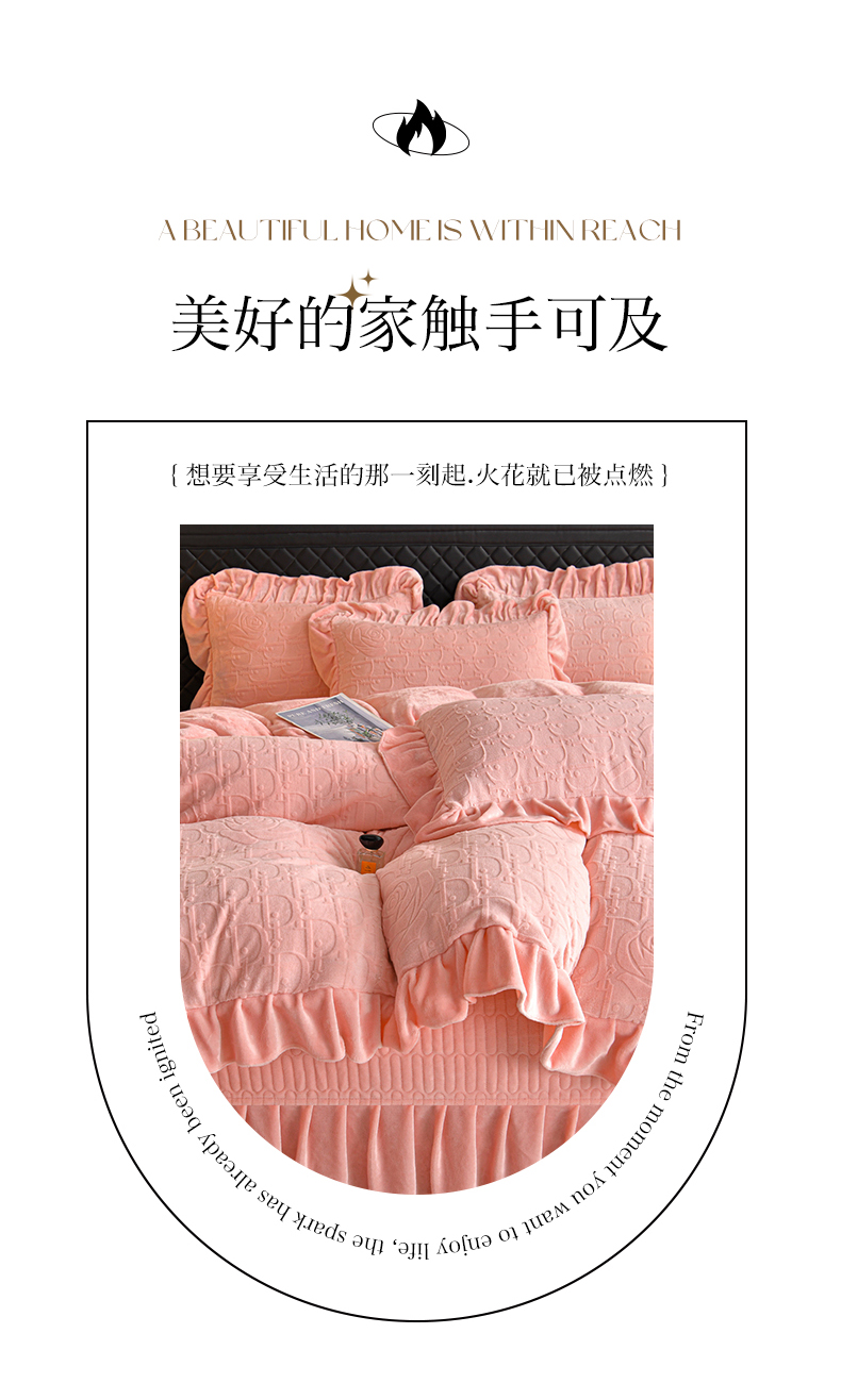 赫本家纺 2025新品8-9斤爆品牛奶绒四件套床裙款金雕绒法莱绒四套件 赫本风,赫本风