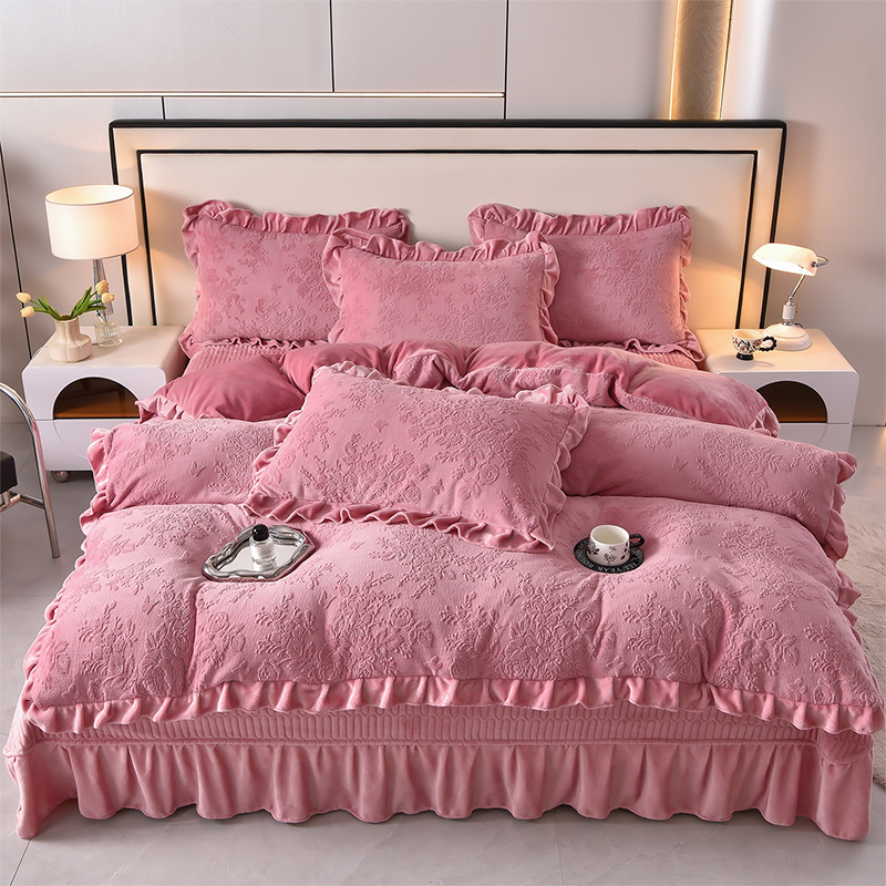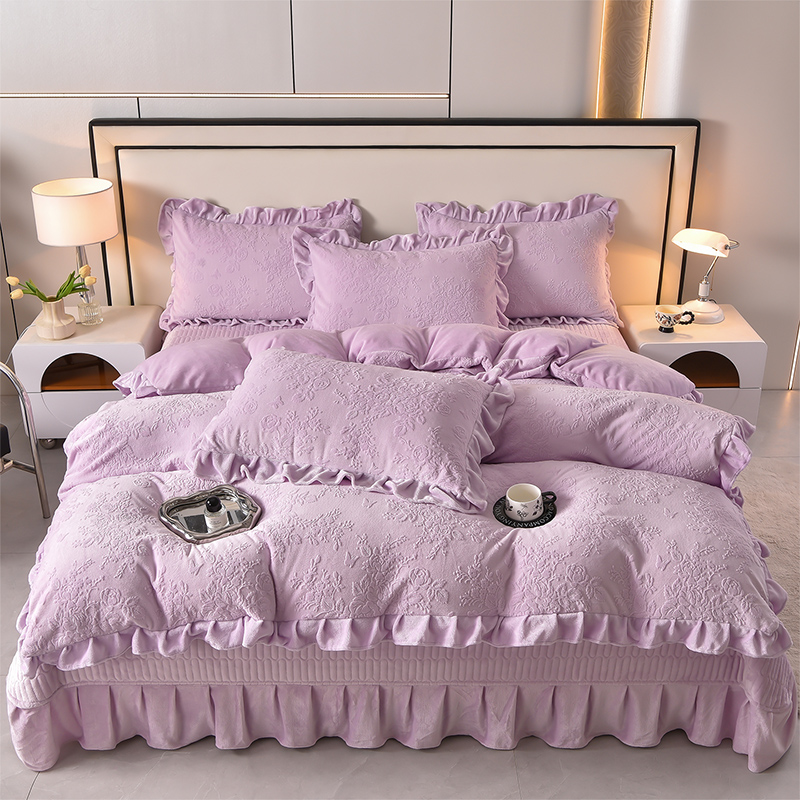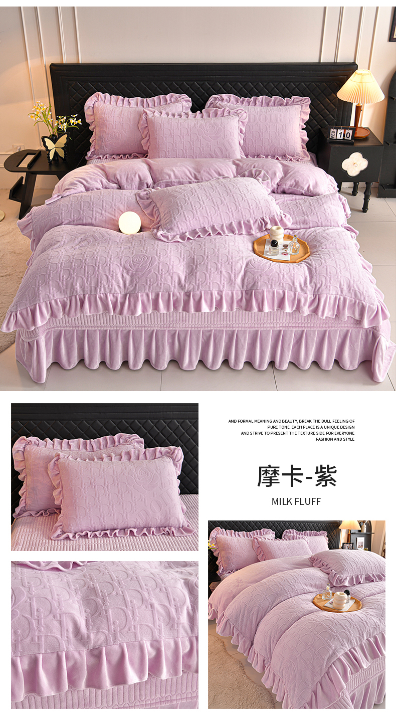 (总)赫本家纺 2025新款高克重纯色花边款雕花绒床盖款四件套,摩卡-咖,繁花-咖,摩卡-粉,繁花-粉,摩卡-紫,繁花-紫,摩卡-灰,繁花-灰,摩卡-红,繁花-红,如梦-豆沙,如梦-蓝,如梦-紫