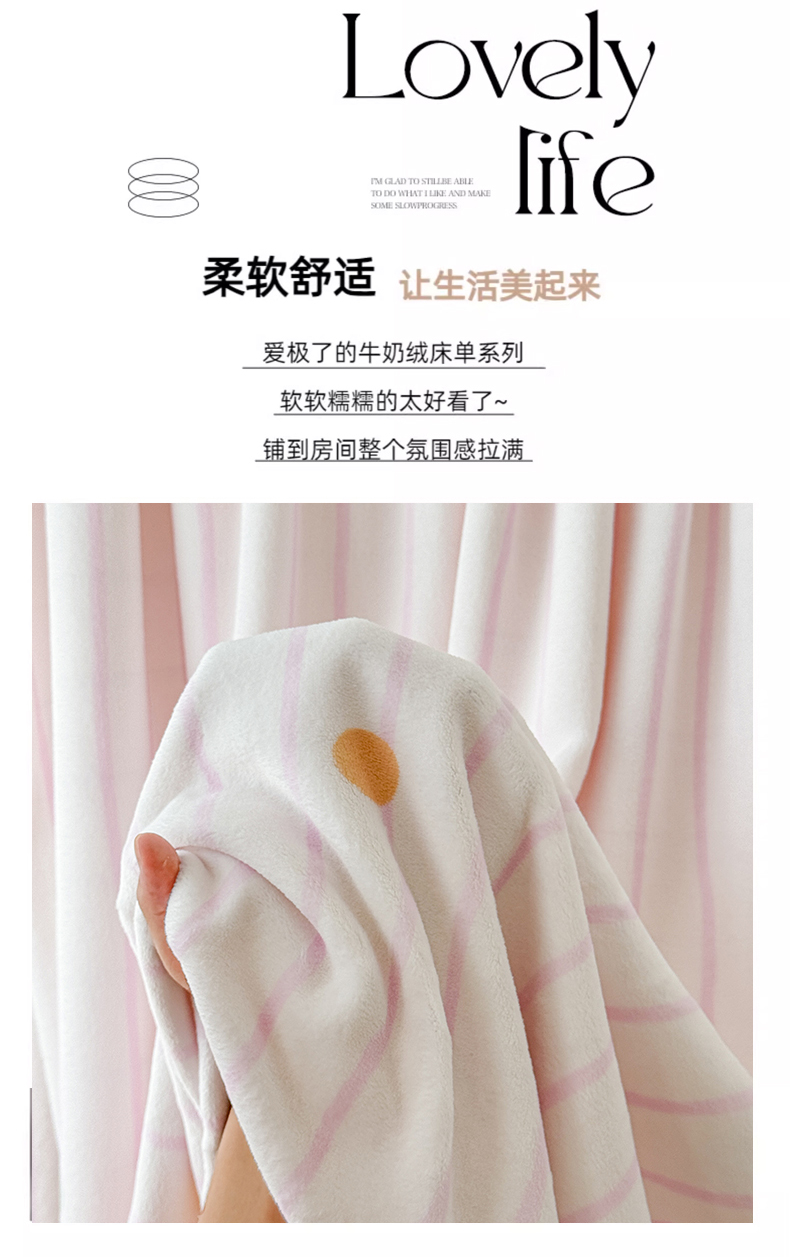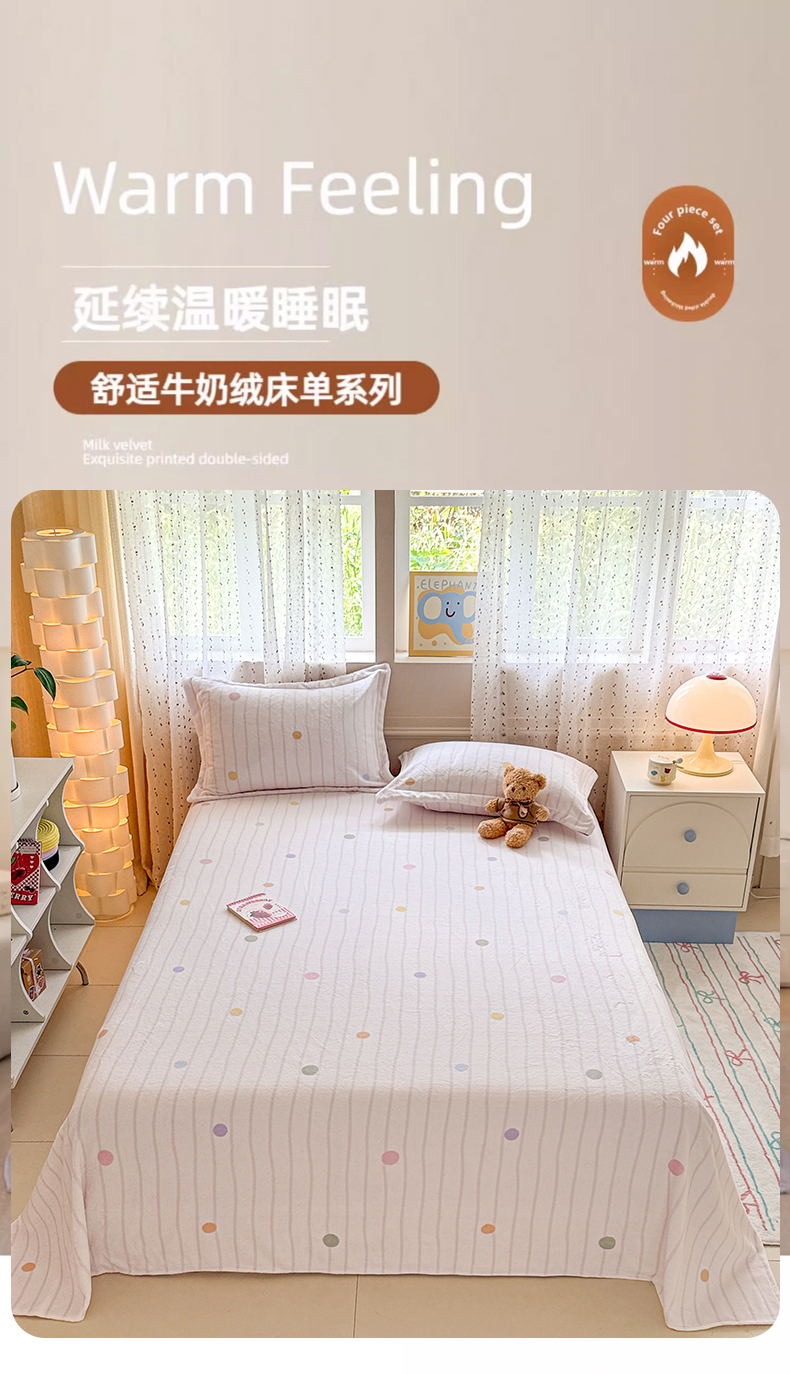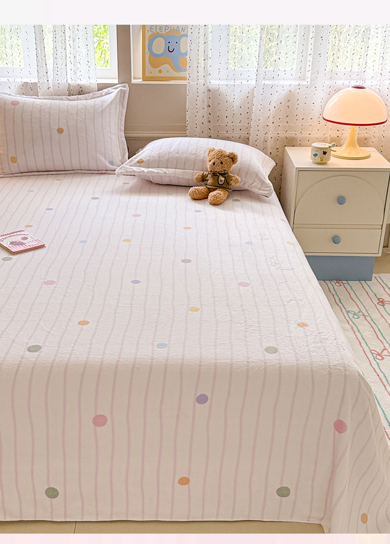 丽美人 2025新款高克重印花牛奶绒无印风床单款(A类母婴级面料) 波点粉条