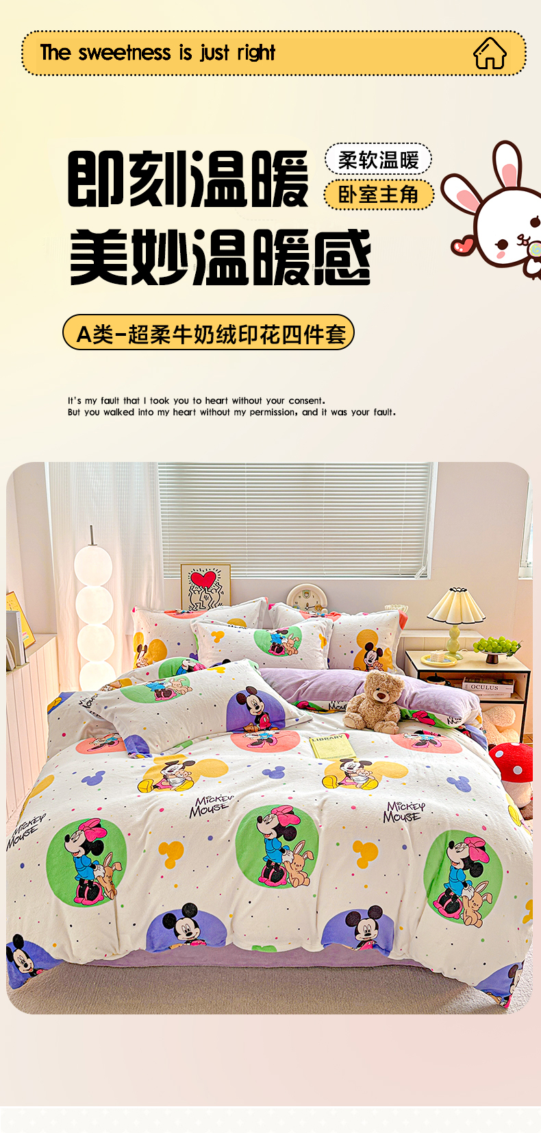 当前位置: 91家纺网 > 商品网购 > 床品套件 > 四件套 > 牛奶绒四件套 > 简一 2025新款小清新牛奶绒印花四件套-卡通系列 马卡米奇