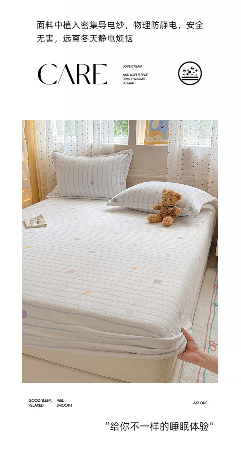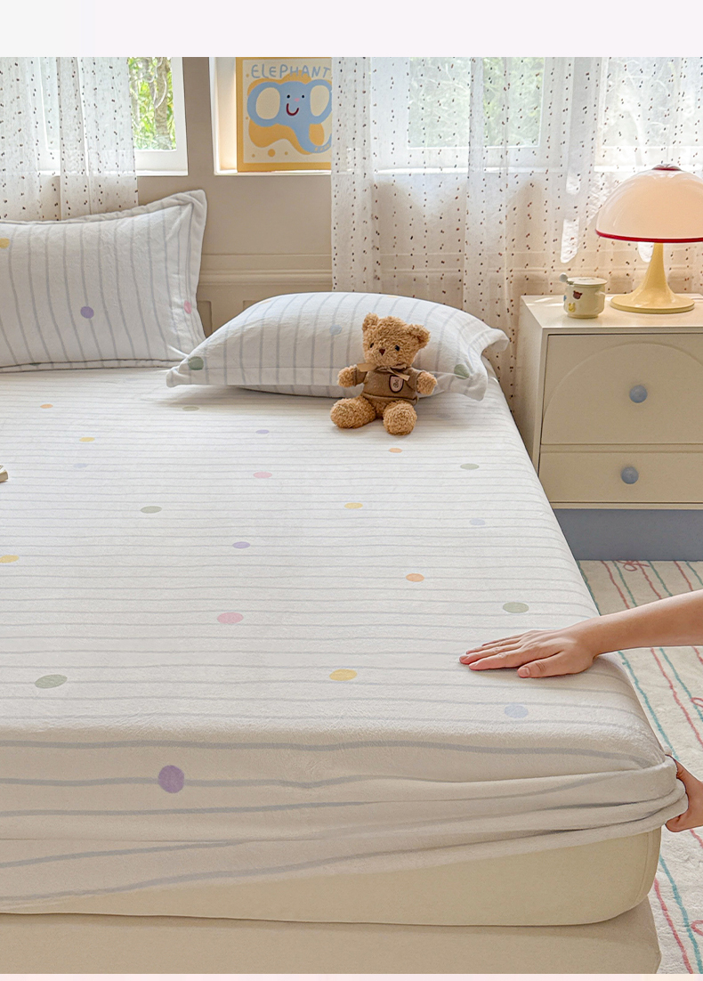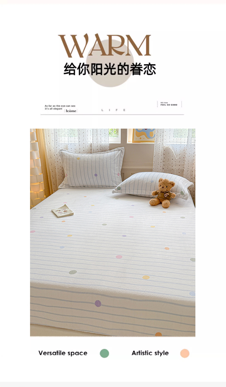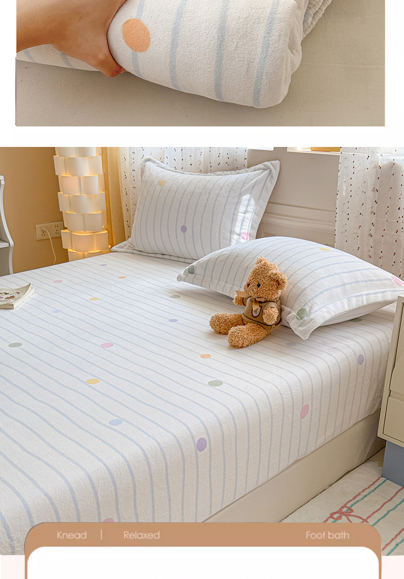 丽美人 2025新款高克重印花牛奶绒无印风床笠款(A类母婴级面料) 波点蓝条
