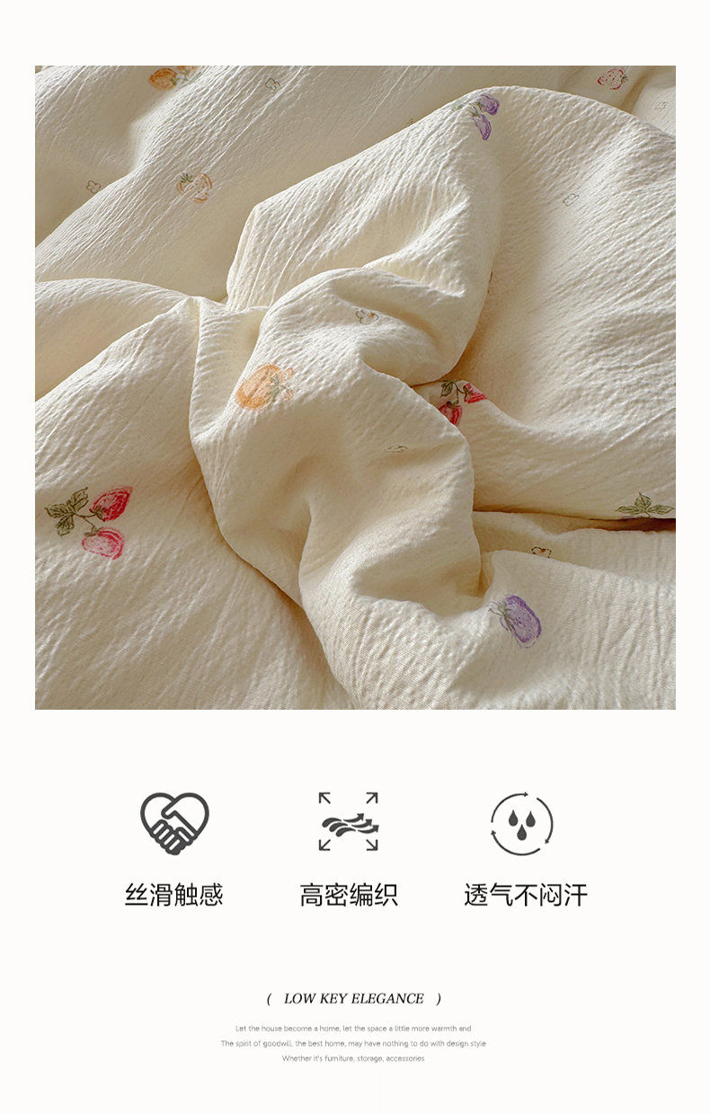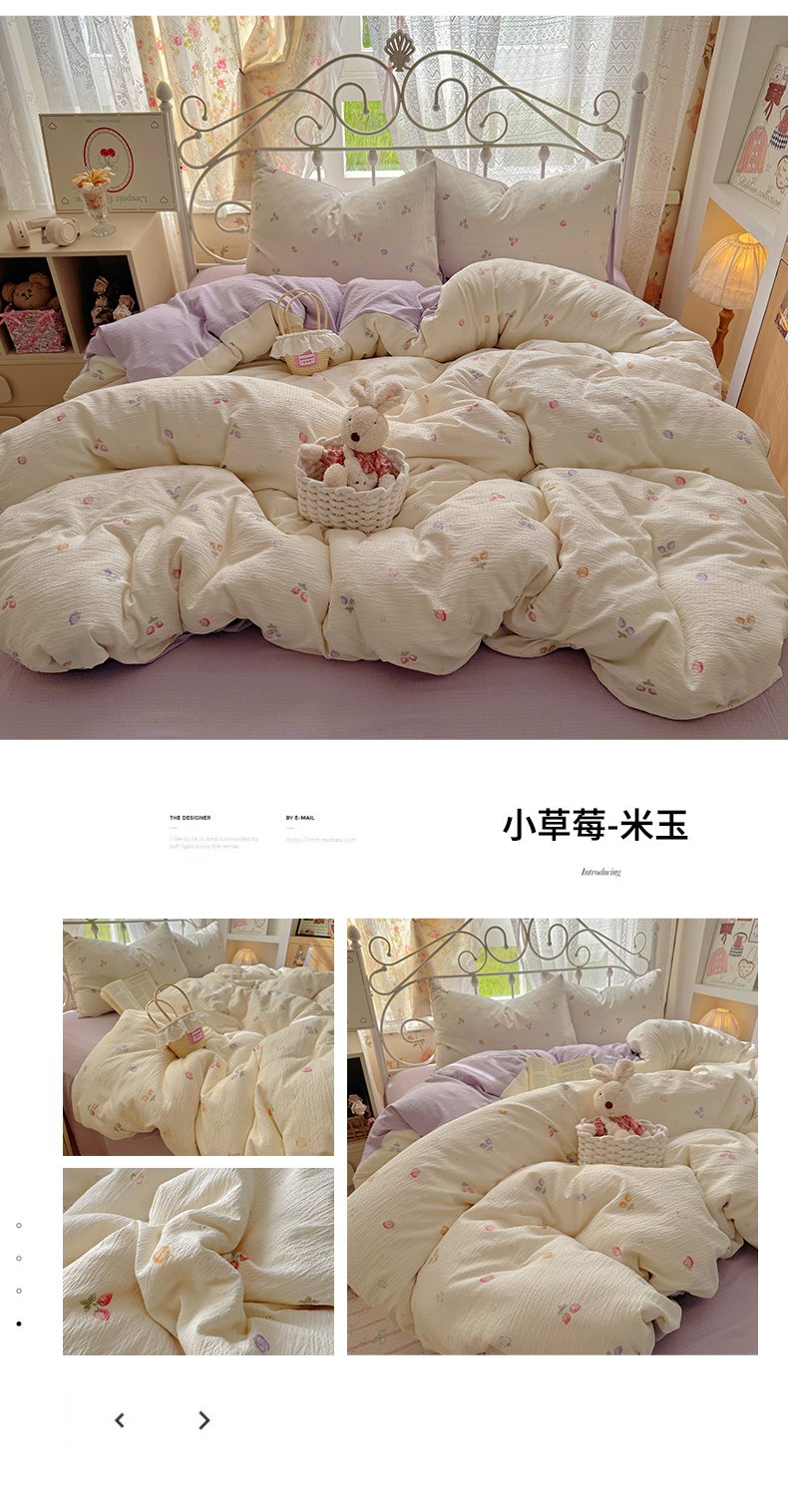 当前位置: 91家纺网 > 商品网购 > 床品套件 > 四件套 > 水洗棉四件套 > 阿曼达 2025爆款云感木m透气柔软印花可爱卡通软糯皱皱亲肤四件套 小草莓-米玉