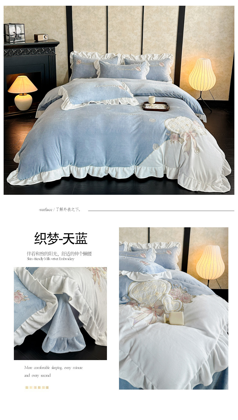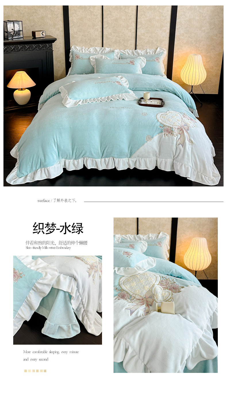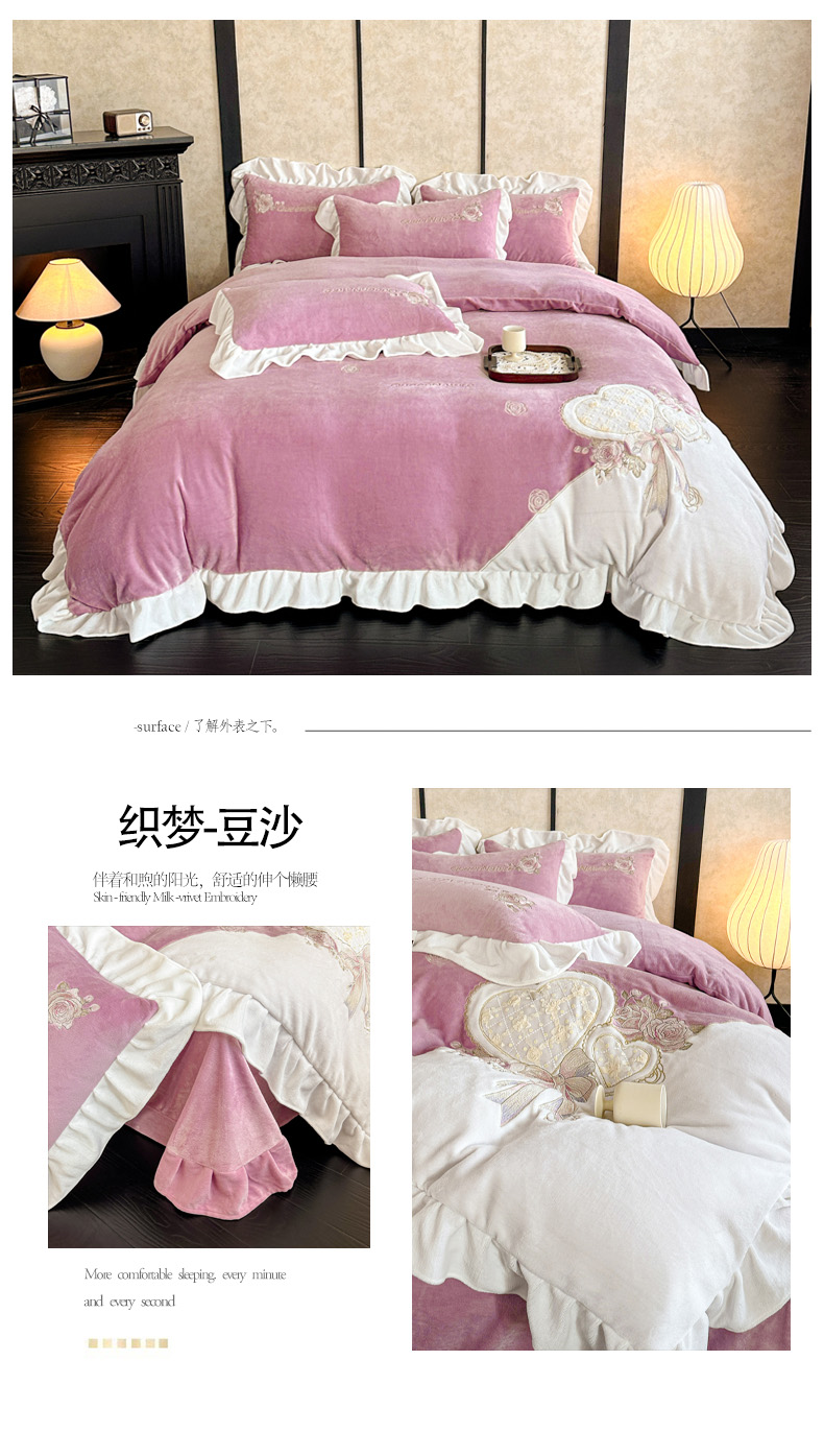 (总)七七家纺 2025新款刺绣款牛奶绒四件套-织梦系列,织梦-粉,织梦-豆沙,织梦-黄,织梦-水绿,织梦-天蓝,织梦-紫