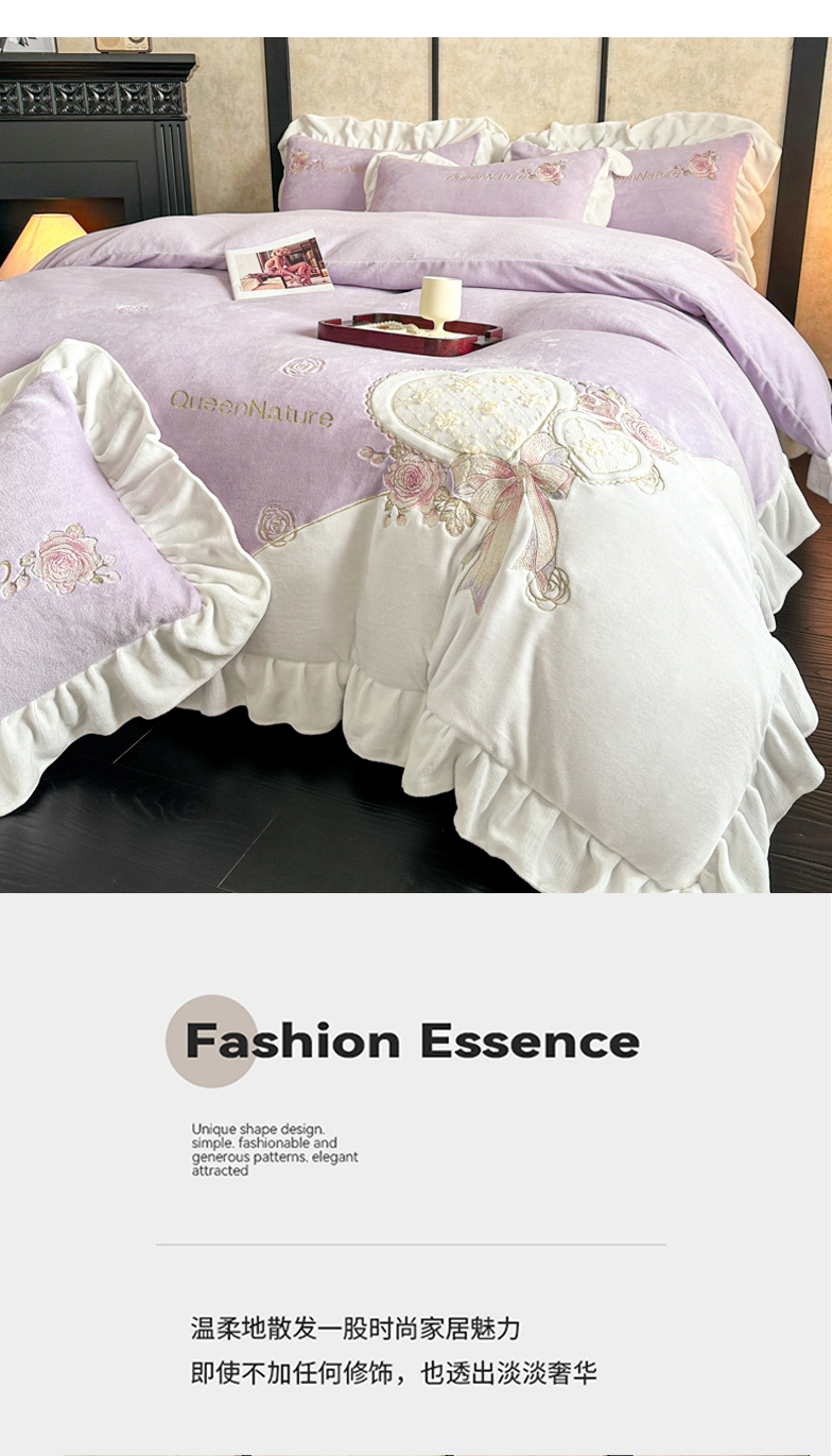 七七家纺 2025新款刺绣款牛奶绒四件套-织梦系列 织梦-紫