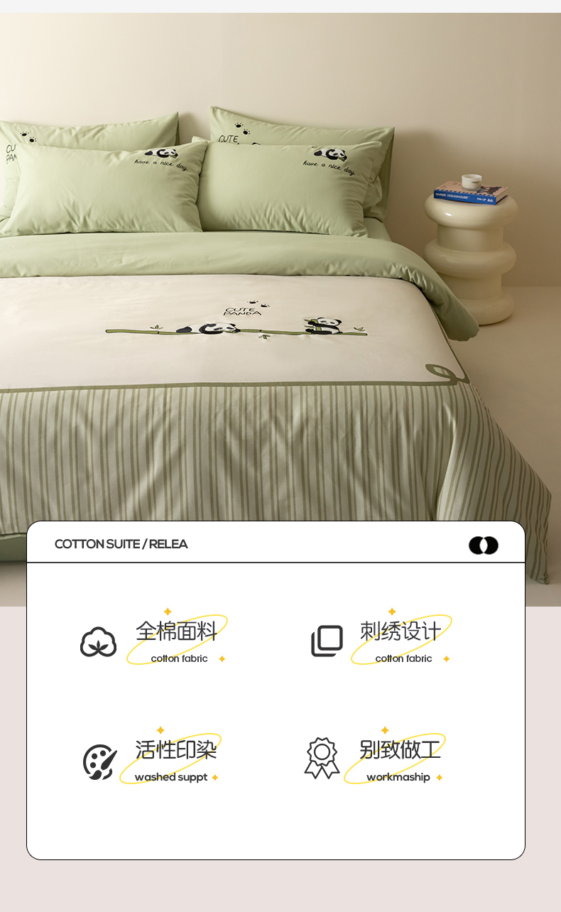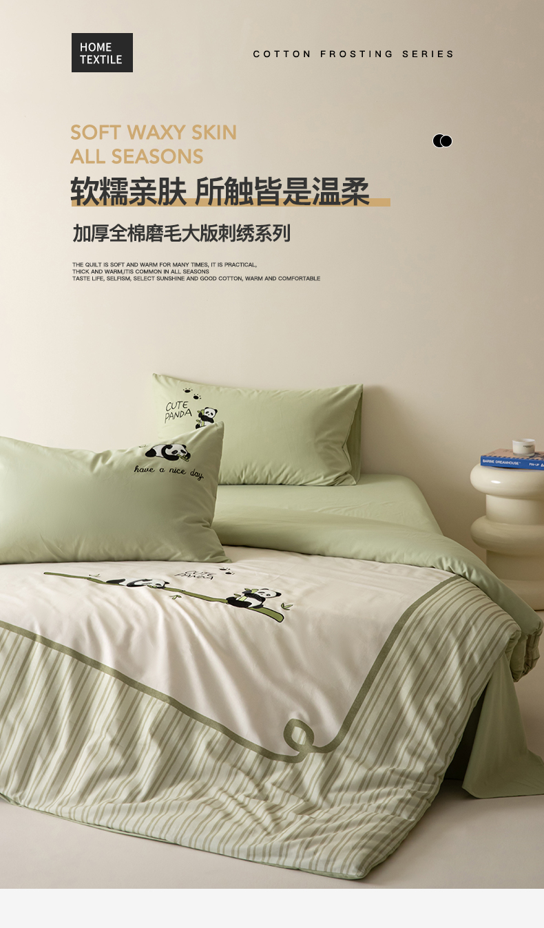 当前位置: 91家纺网 > 商品网购 > 床品套件 > 四件套 > 全棉普通四件套 > 小叮当家纺仓储工厂店 2025新款提供买家秀爆款花型不断货全棉纯棉磨毛四件套大版定位印加绣 熊猫抱竹