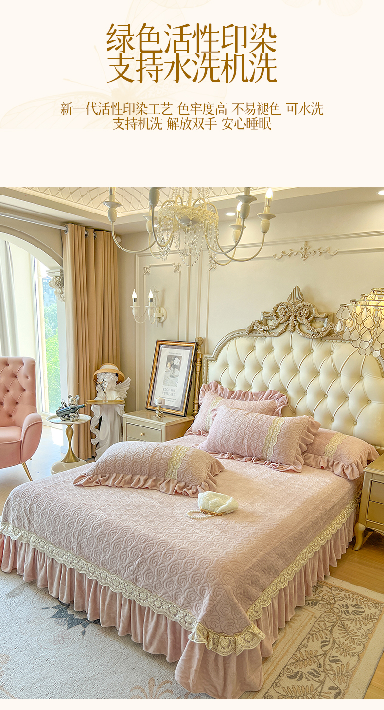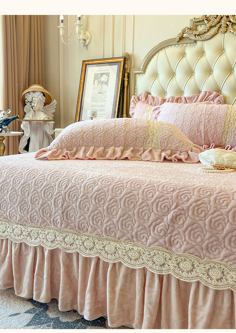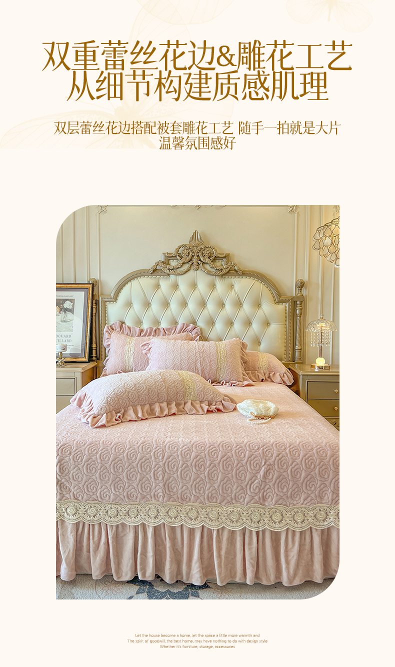 (总)瑞宝 2025新款雕花牛奶绒花边夹棉床盖四件套-莫妮卡,奶昔白,抹茶绿,奶茶咖,少女粉,雾蓝