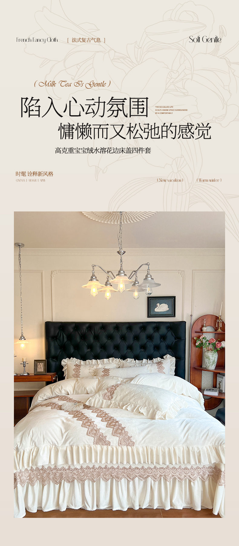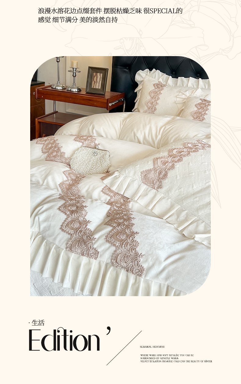 (总)瑞宝 2025新款雕花牛奶绒花边夹棉床盖四件套-云梦,云梦-米白,云梦-靛蓝,云梦-浅咖,云梦-清新绿,云梦-柔粉,云梦-雾紫