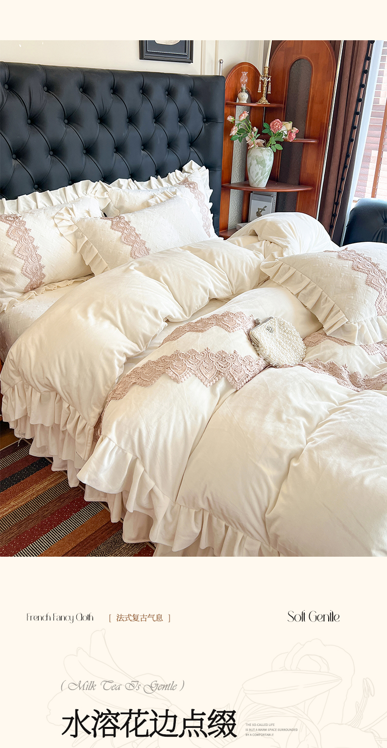 (总)瑞宝 2025新款牛奶绒花边床盖四件套-蝶舞花语(控价 298起 ),蝶舞花语-奶茶棕,蝶舞花语-蜜粉,蝶舞花语-奶油米,蝶舞花语-青柠绿,蝶舞花语-香芋紫,蝶舞花语-星空蓝
