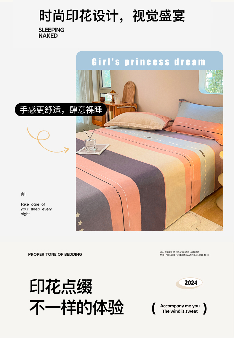 小叮当家纺仓储工厂店 2025新款(买家秀 不断货)A类全棉纯棉磨毛单床单 床单单件 条纹星星-粉