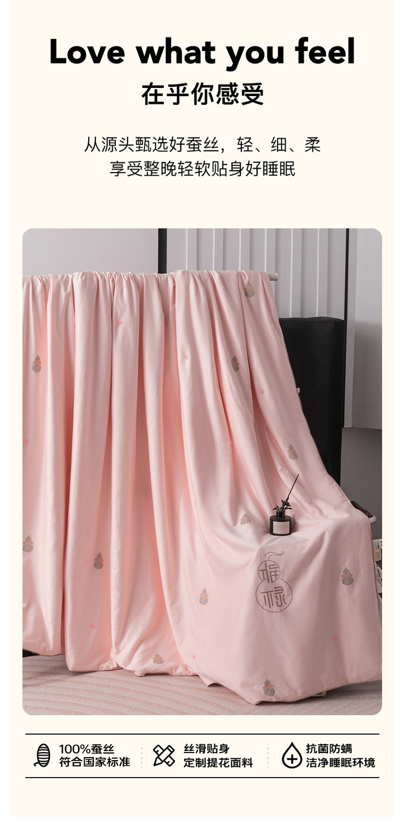 (总)假一赔三 新国标双宫茧桑蚕丝被被子被芯100%长丝蚕丝被正品春秋被四季被喜被 ,好事发生-粉玉色-2X2.3米,好事发生-白色-2X2.3米,好事发生-粉玉色-2.2X2.4米,好事发生-白色-2.2X2.4米