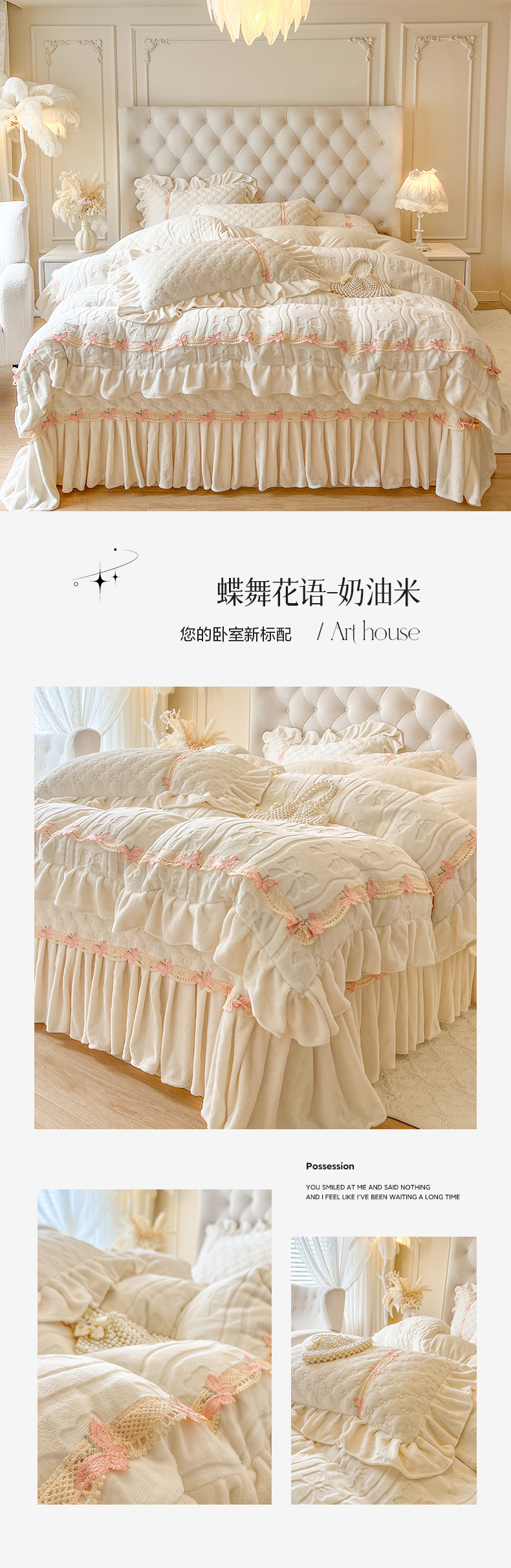 (总)瑞宝 2025新款牛奶绒花边床盖四件套-蝶舞花语(控价 298起 ),蝶舞花语-奶茶棕,蝶舞花语-蜜粉,蝶舞花语-奶油米,蝶舞花语-青柠绿,蝶舞花语-香芋紫,蝶舞花语-星空蓝