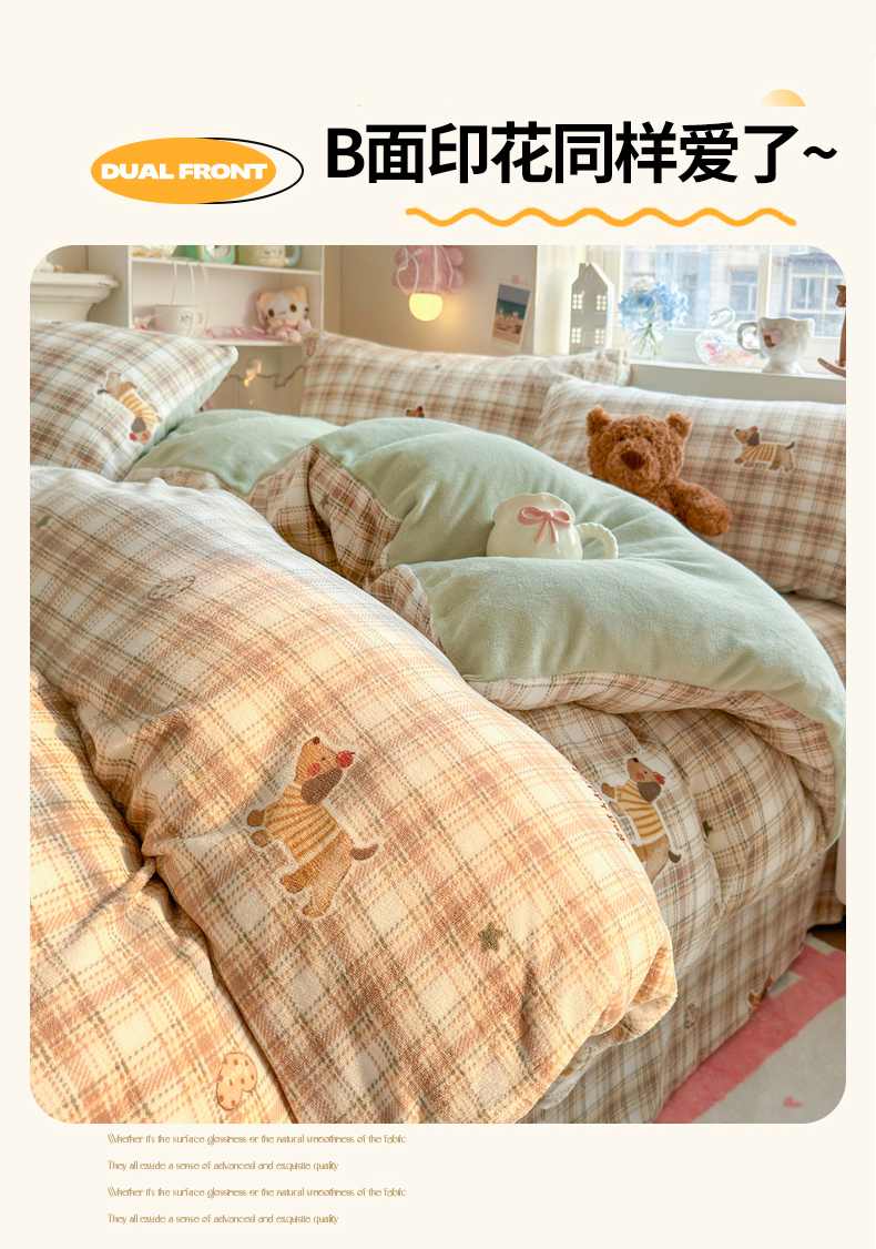 (总)Sweet dreams甜梦 2025新款双层纱豆豆绒棉加绒四件套,楼兰米,千颂伊蓝,花梦时,童趣王国,条纹小熊仔,水蜜桃,朱古力小奶狗,绘梨黑,温婉话语,郁金花海