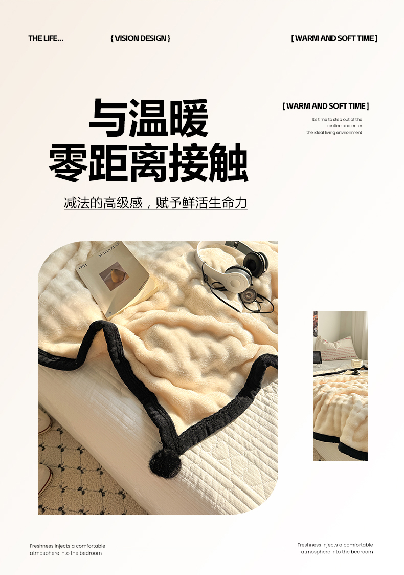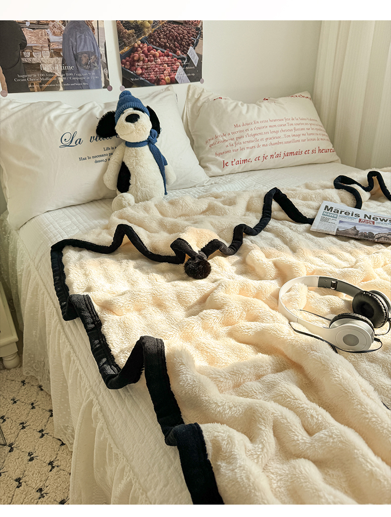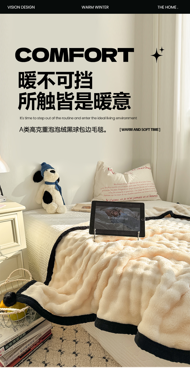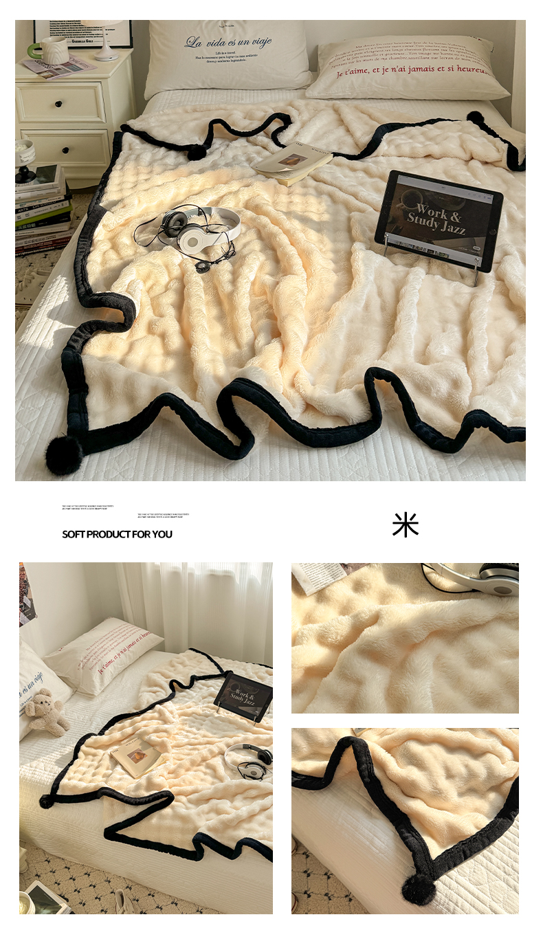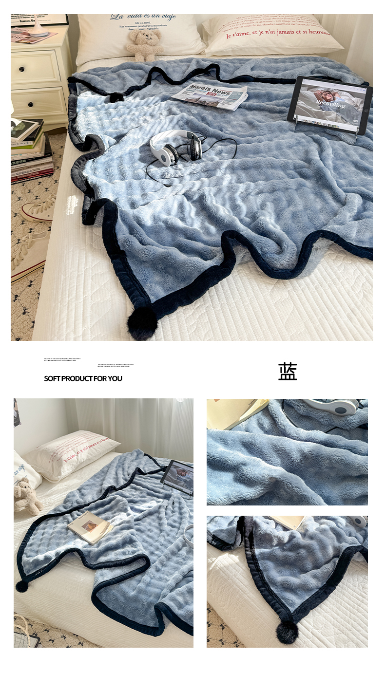 小叮当家纺仓储工厂店 2025新款简约泡泡绒黑球包边毛毯毯子午睡毯 泡泡-粉