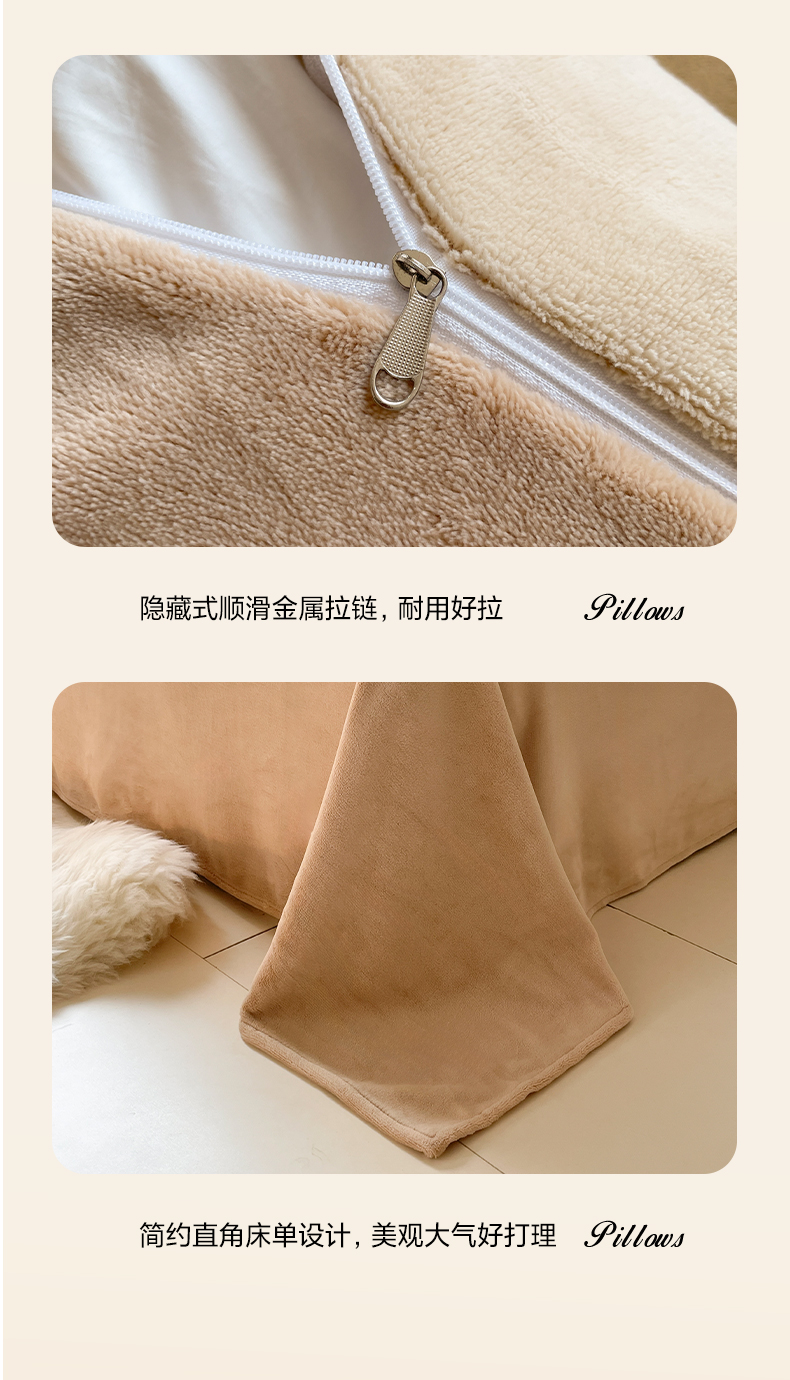 商品名称:小叮当家纺仓储工厂店 2025新款纯色双拼牛奶绒四件套190克 卡尔-桃粉+浅紫
