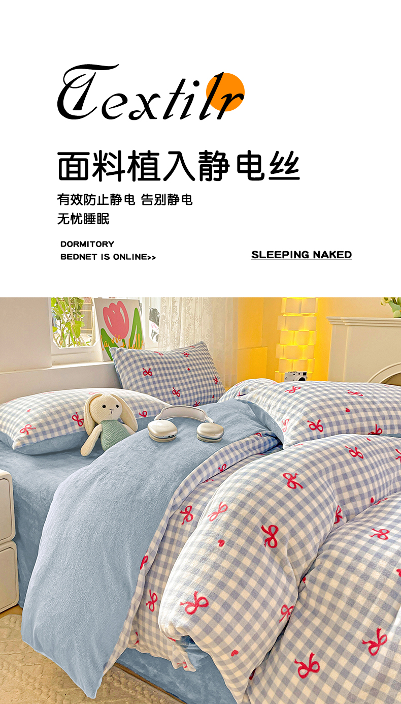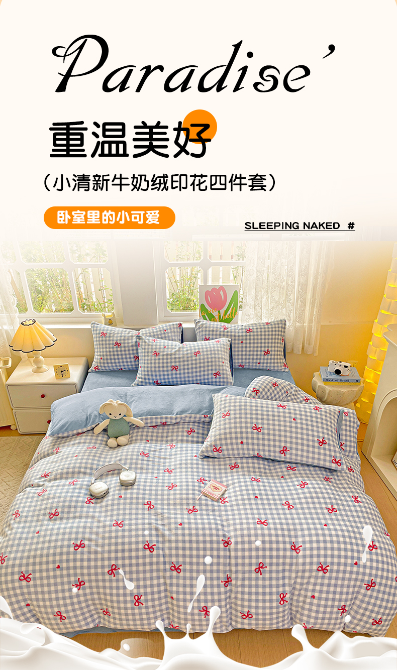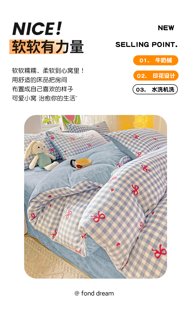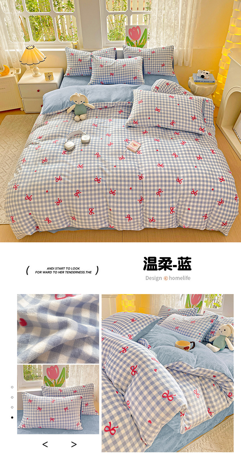 当前位置: 91家纺网 > 商品网购 > 床品套件 > 四件套 > 牛奶绒四件套 > 暖芯优选 2025新款小清新加厚高克重牛奶绒四件套直播热款电商热款 温柔-蓝