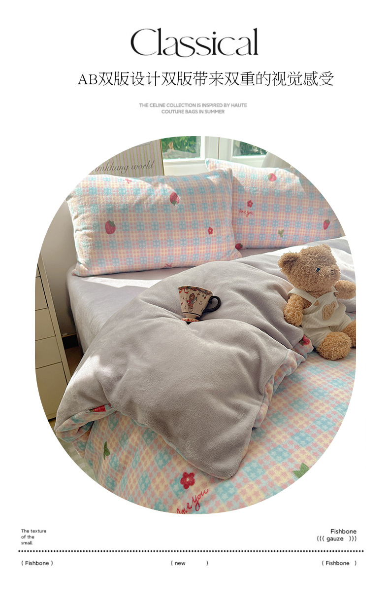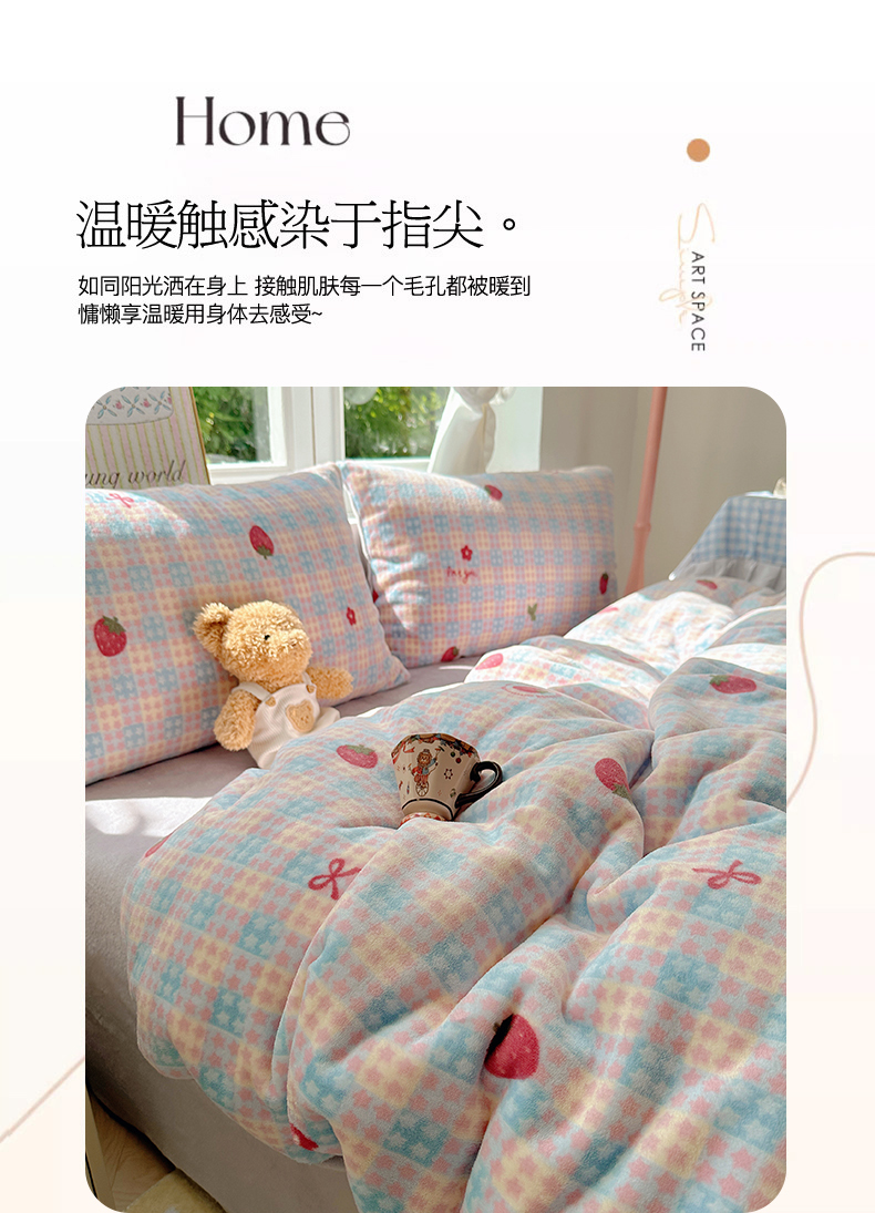 当前位置: 91家纺网 > 商品网购 > 床品套件 > 四件套 > 牛奶绒四件套 > 暖芯优选 2025新款小清新加厚高克重牛奶绒四件套直播热款电商热款 草莓星星