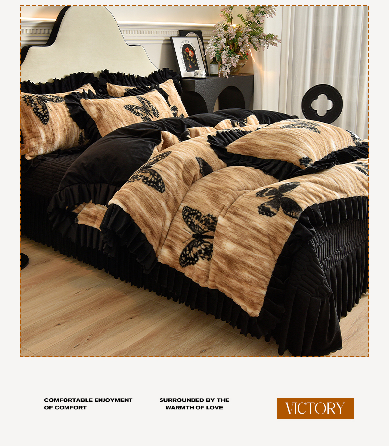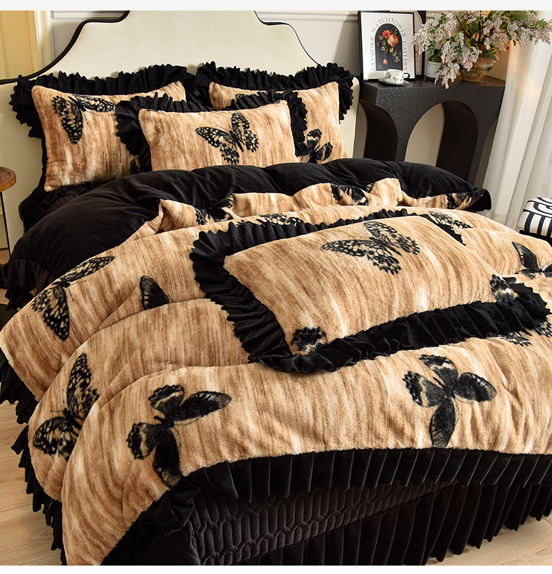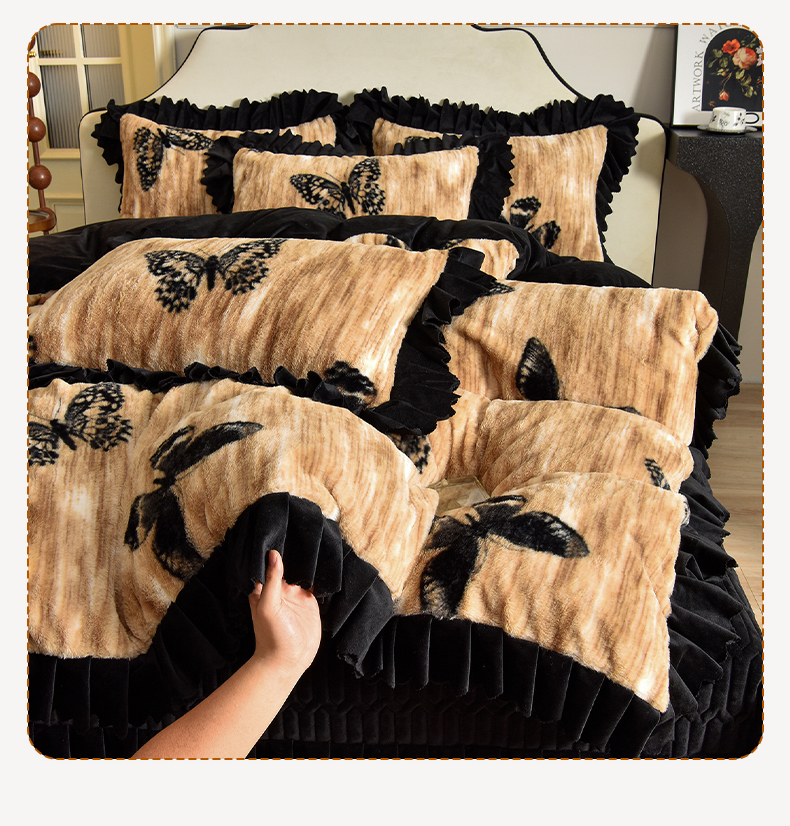 茉保家纺 2025新款9.5斤秋冬保暖牛奶绒印花兔毛绒四件套 雅轻蝶