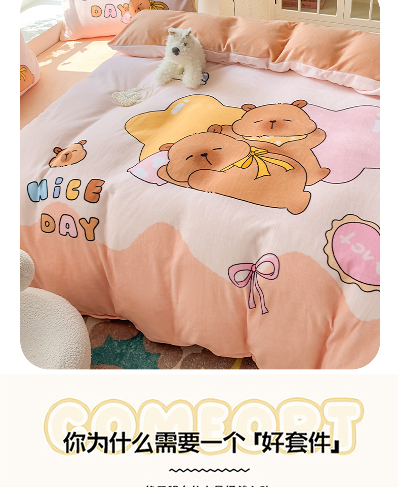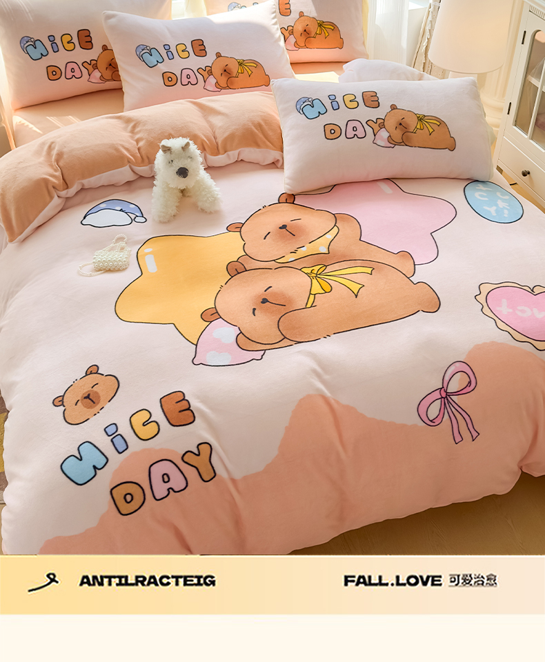 当前位置: 91家纺网 > 商品网购 > 床品套件 > 四件套 > 牛奶绒四件套 > 浩诚 2025新款高克重原创设计牛奶绒大版卡通四件套第2批 睡梦巴拉