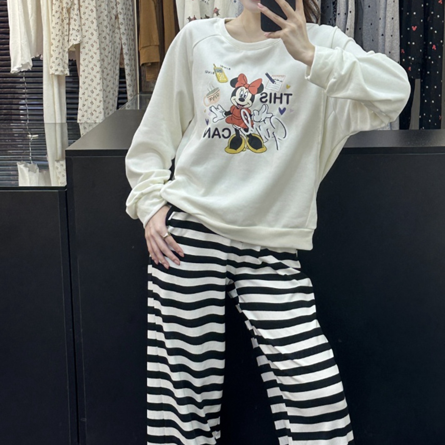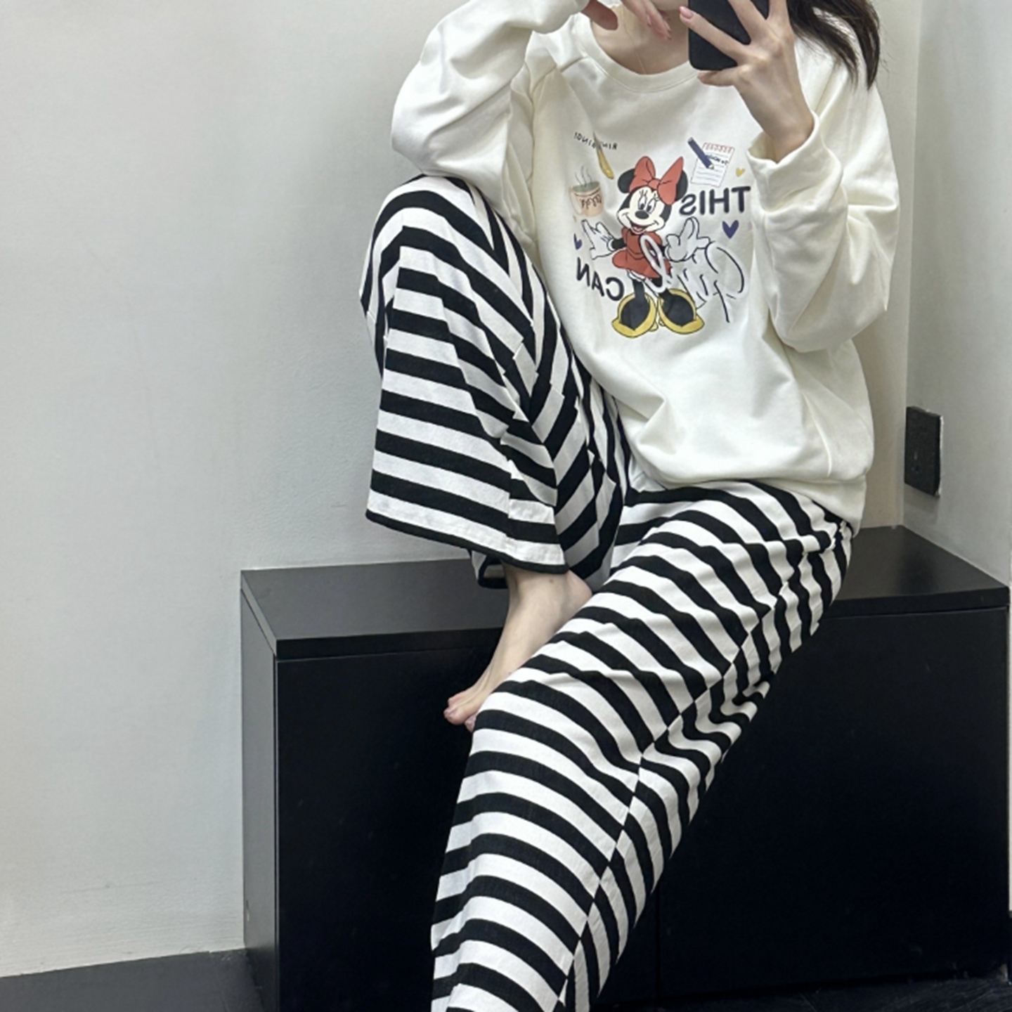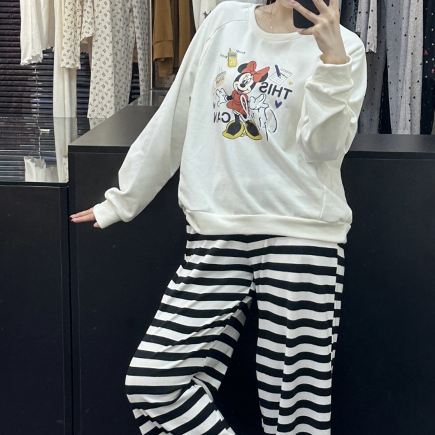 当前位置: 91家纺网 > 商品网购 > 居家日用 > 睡衣/家居服套装 > (总)妍景家居生活馆 2025新款休闲圆领条纹米奇套装