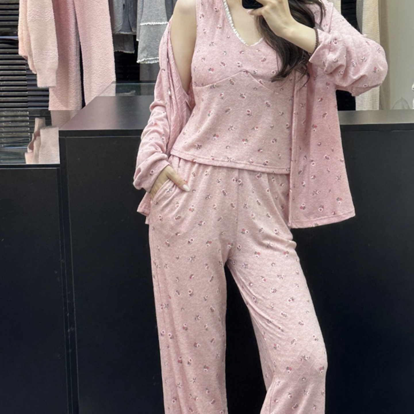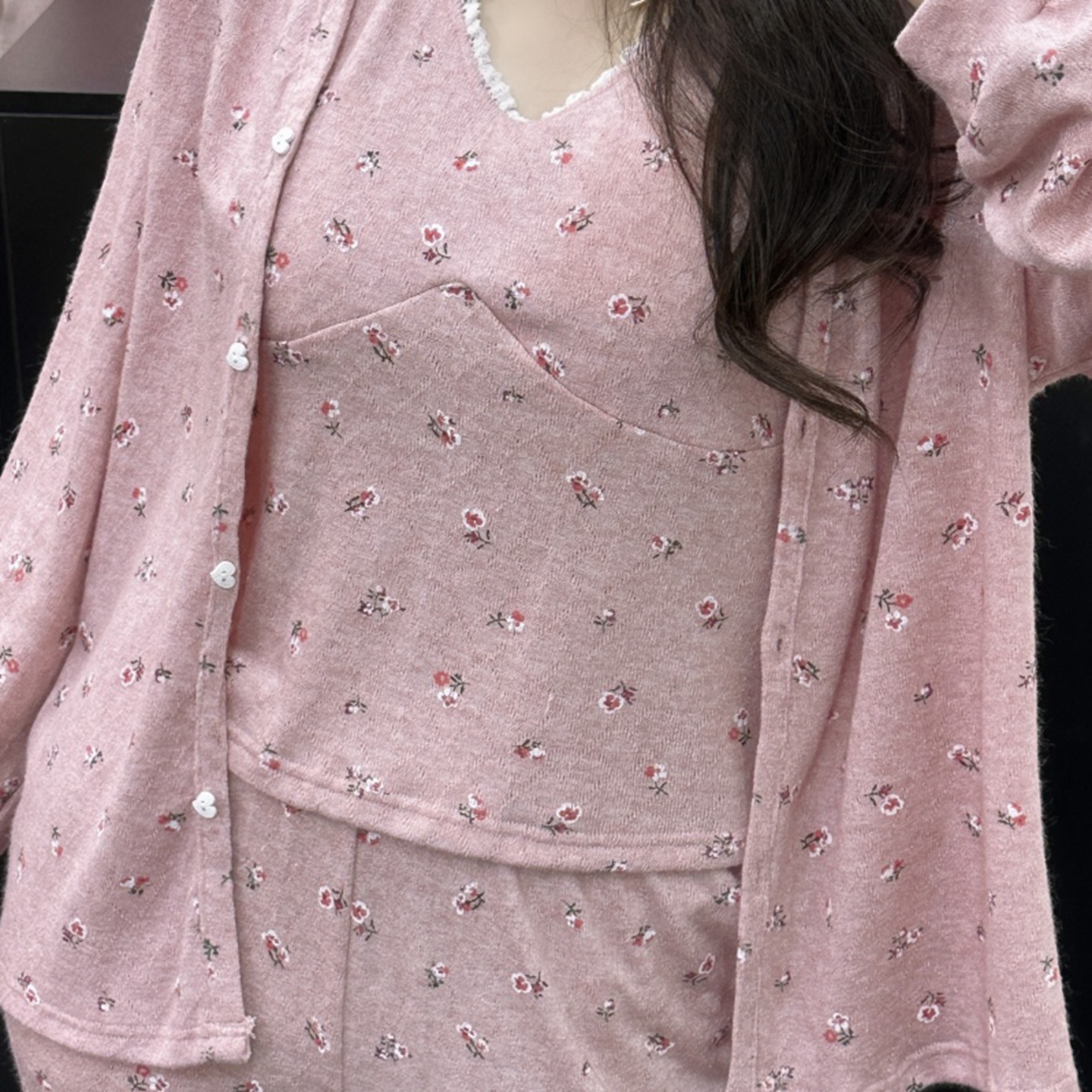 (总)妍景家居生活馆 2025新款仿羊绒小碎花三件套粉