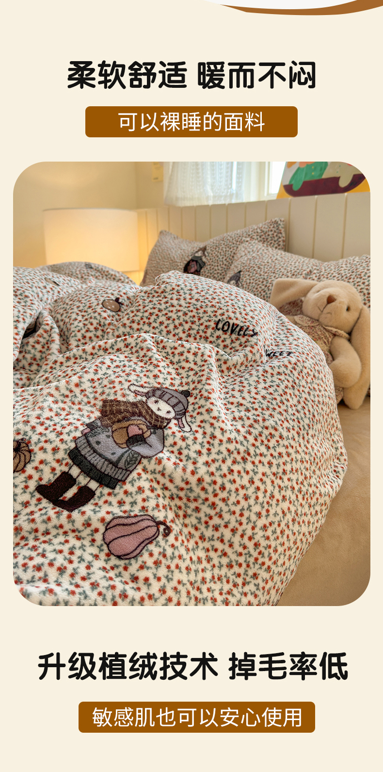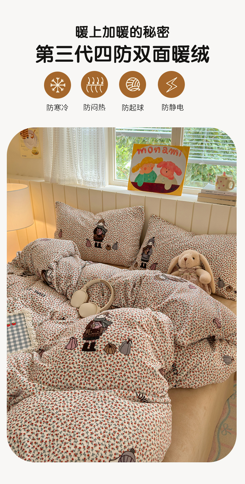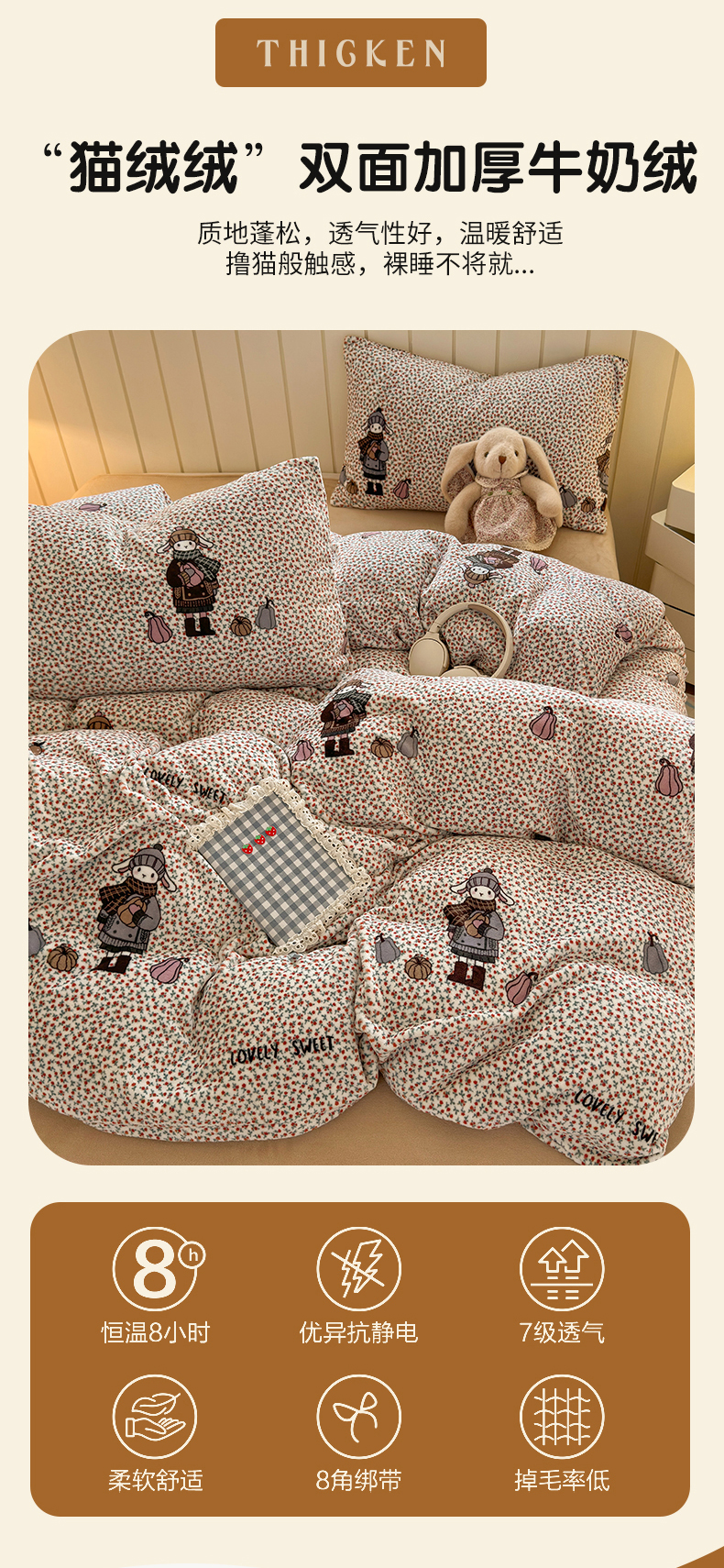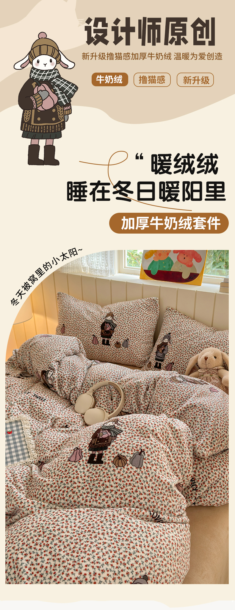 当前位置: 91家纺网 > 商品网购 > 床品套件 > 四件套 > 牛奶绒四件套 > 丽美人家纺 2025新款小版印花牛奶绒四件套 春日女孩