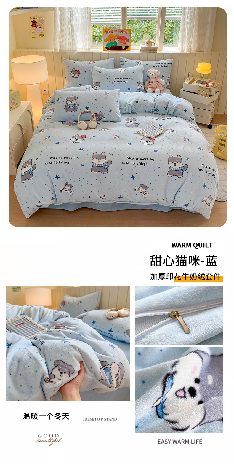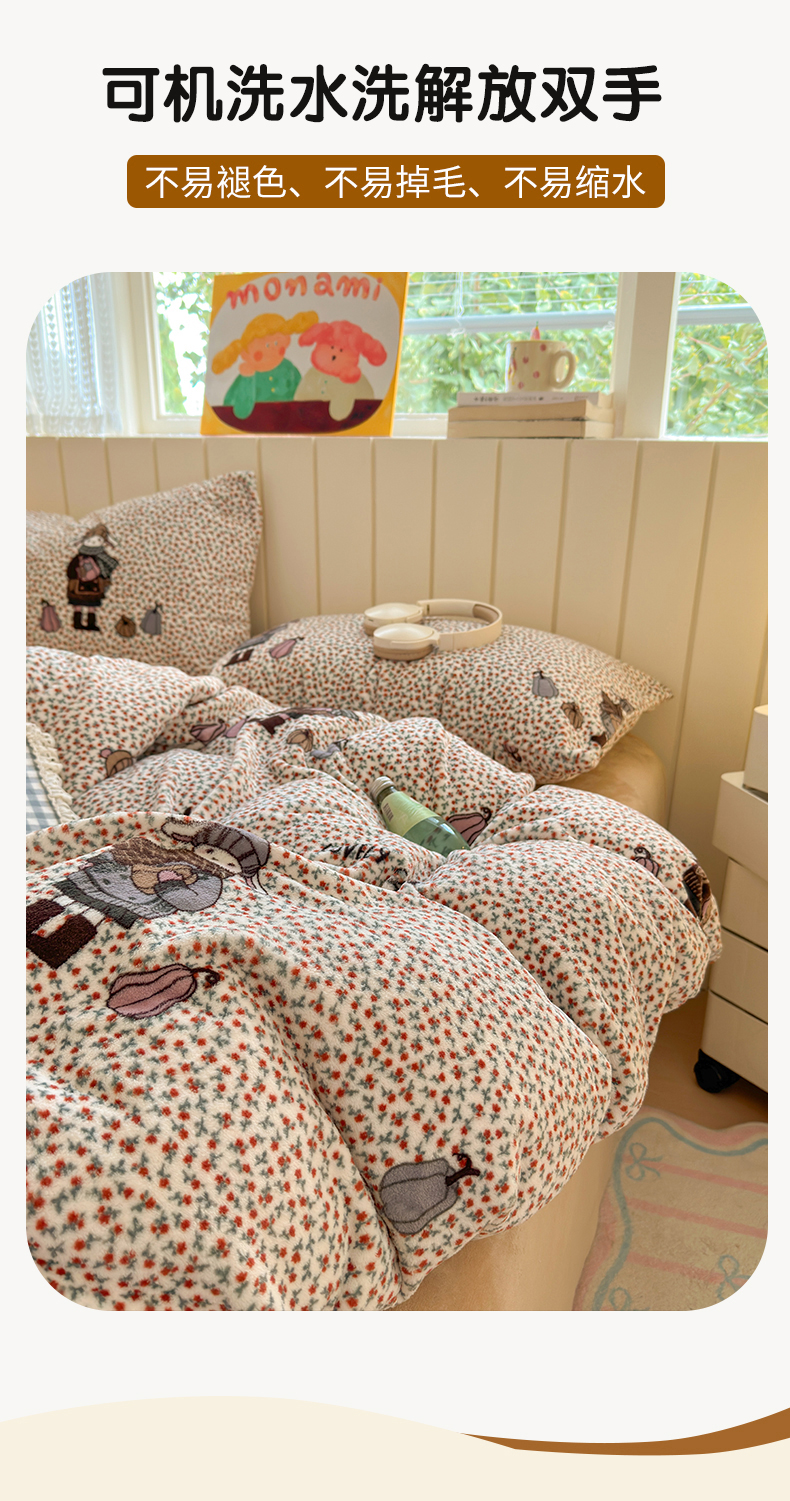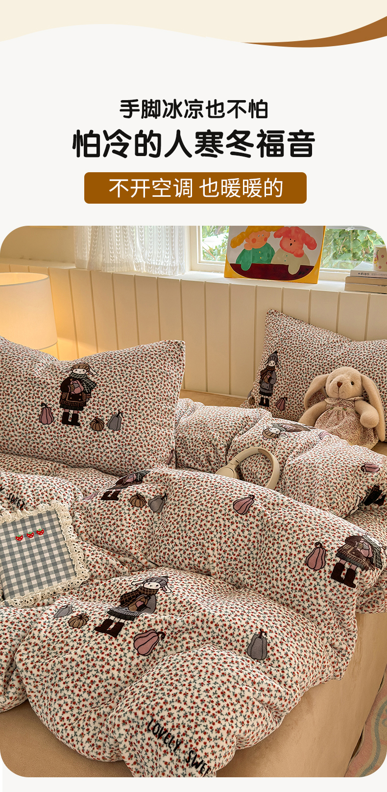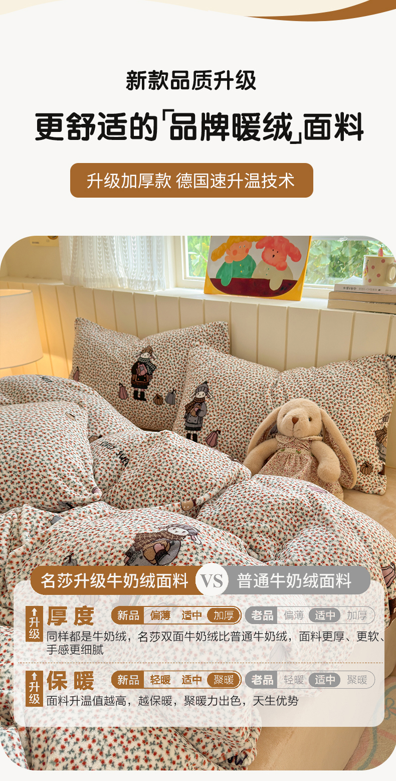 当前位置: 91家纺网 > 商品网购 > 床品套件 > 四件套 > 牛奶绒四件套 > 丽美人家纺 2025新款小版印花牛奶绒四件套 春日女孩