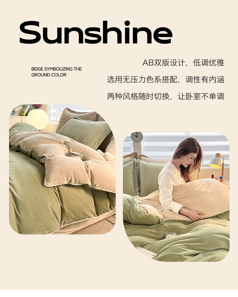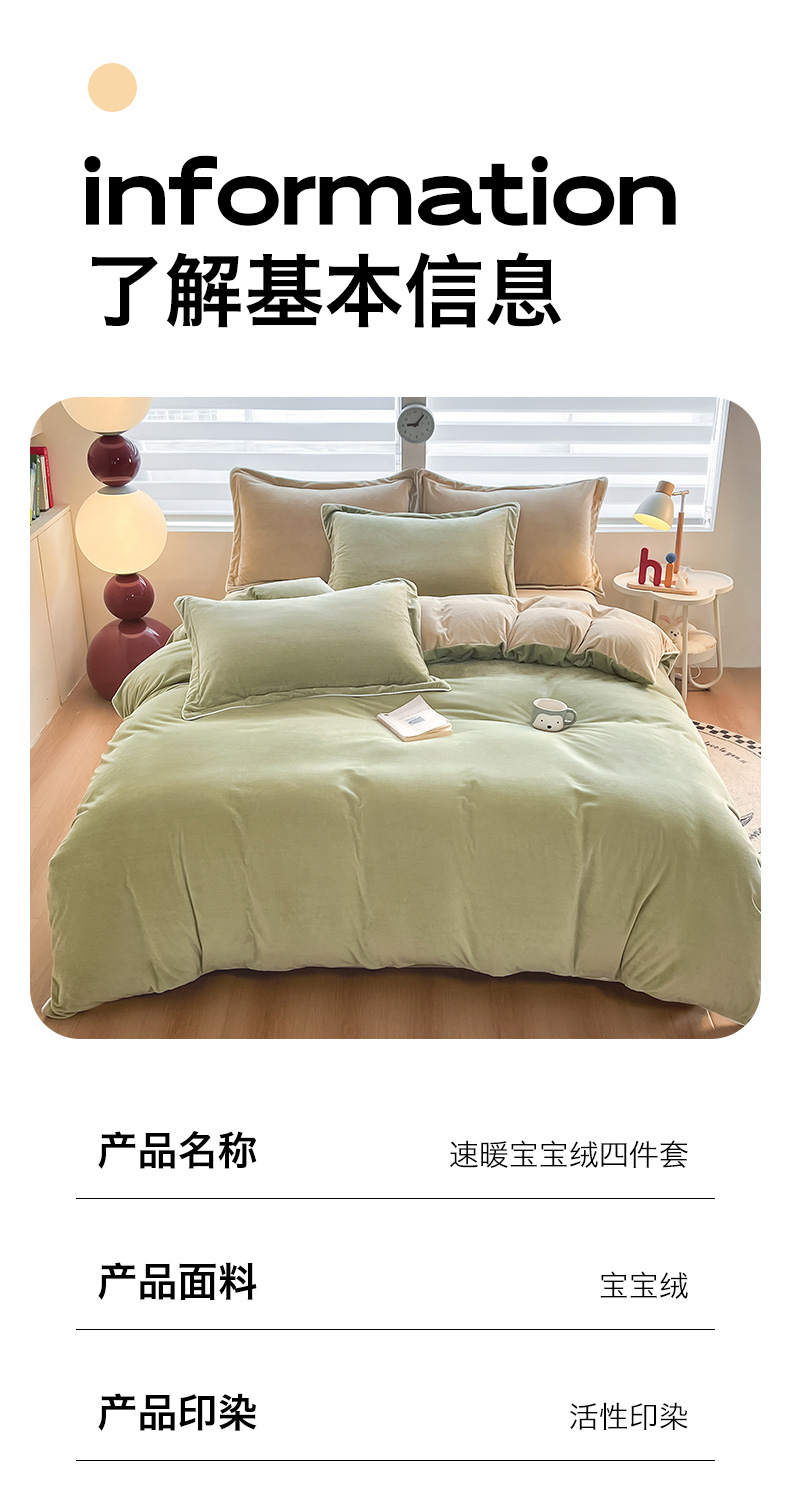 当前位置: 91家纺网 > 商品网购 > 床品套件 > 四件套 > 牛奶绒四件套 > 九沐良品 2025新款加厚婴儿绒牛奶绒四件套工艺款宝宝绒四件套 苔绿+米驼