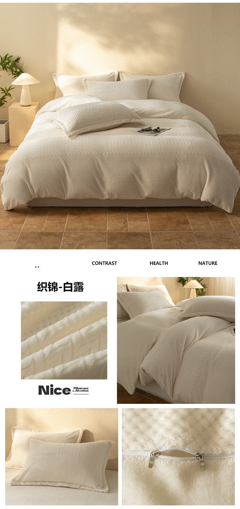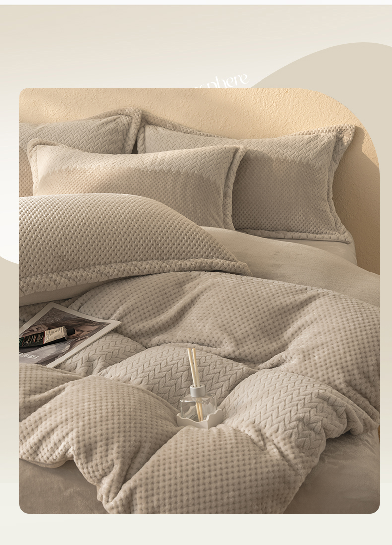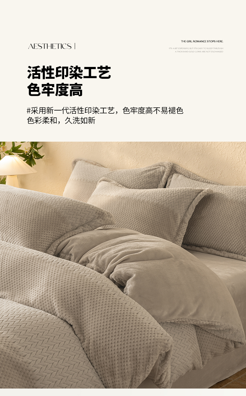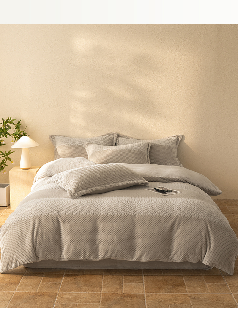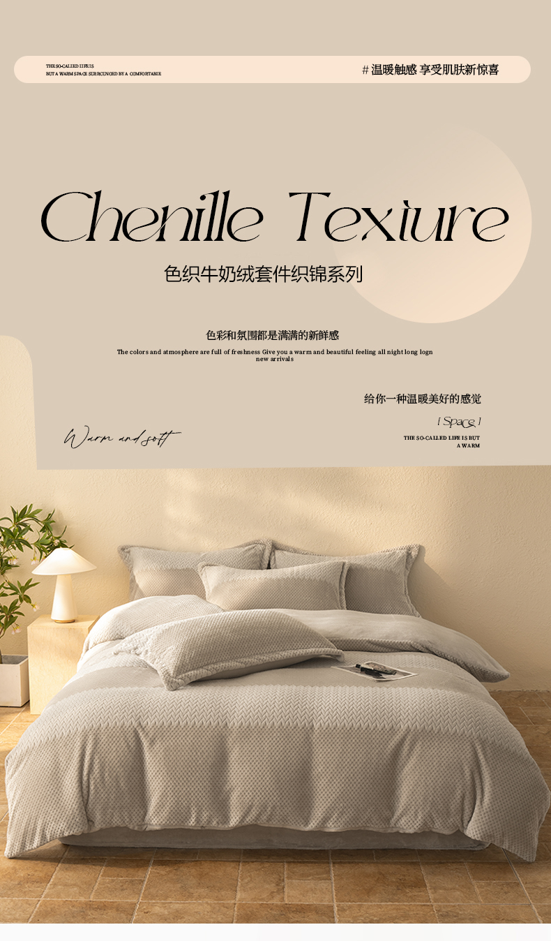 当前位置: 91家纺网 > 商品网购 > 床品套件 > 四件套 > 牛奶绒四件套 > 源舍家纺 2025新款色织拼色编织提花轻奢牛奶绒四件套(场景二) 织锦-咖韵