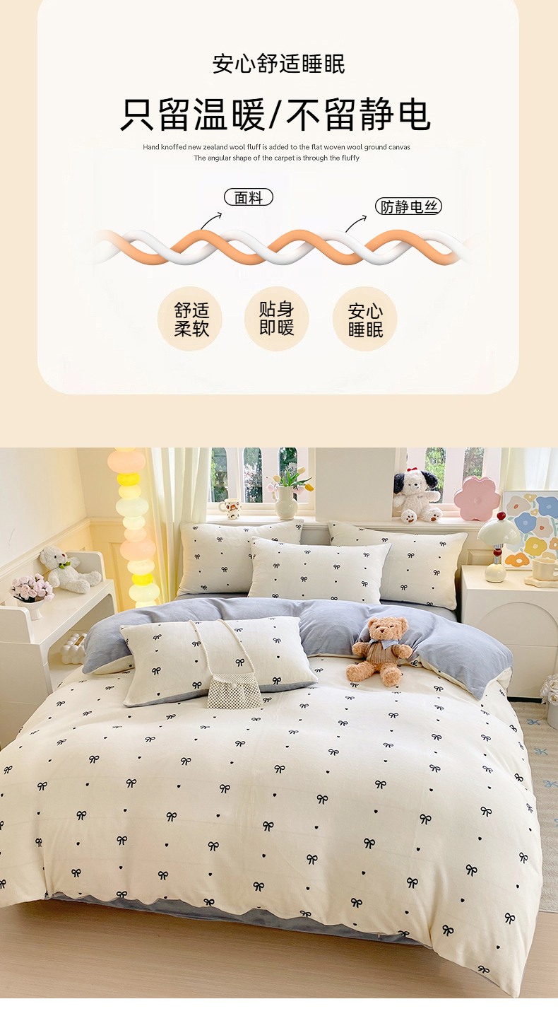 当前位置: 91家纺网 > 商品网购 > 床品套件 > 四件套 > 牛奶绒四件套 > 悦织湾家纺 2025新款高克重牛奶绒印花四件套床单床笠轻奢时尚床上用品三四件套被套 甜蜜蝴蝶结