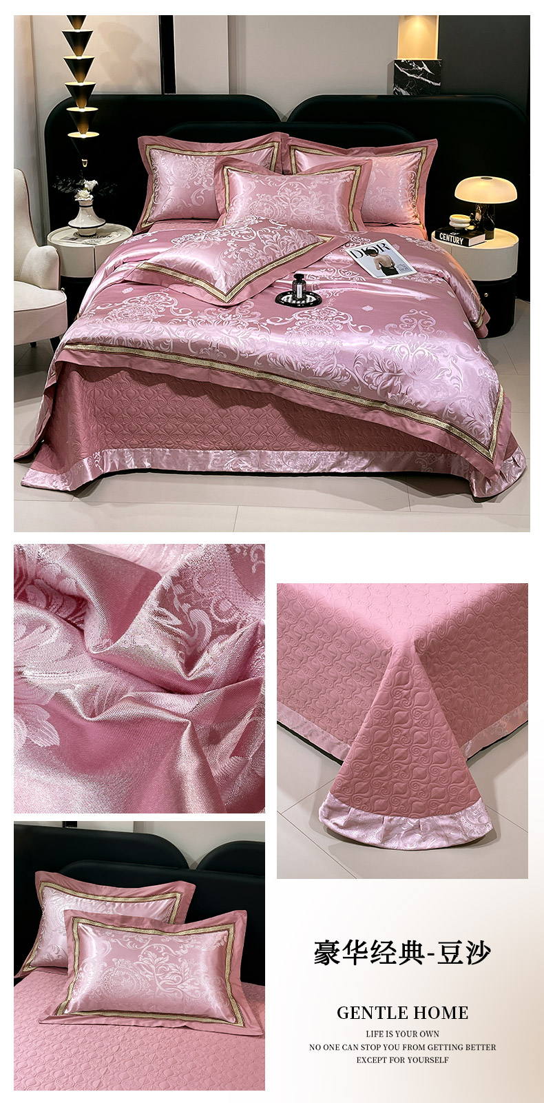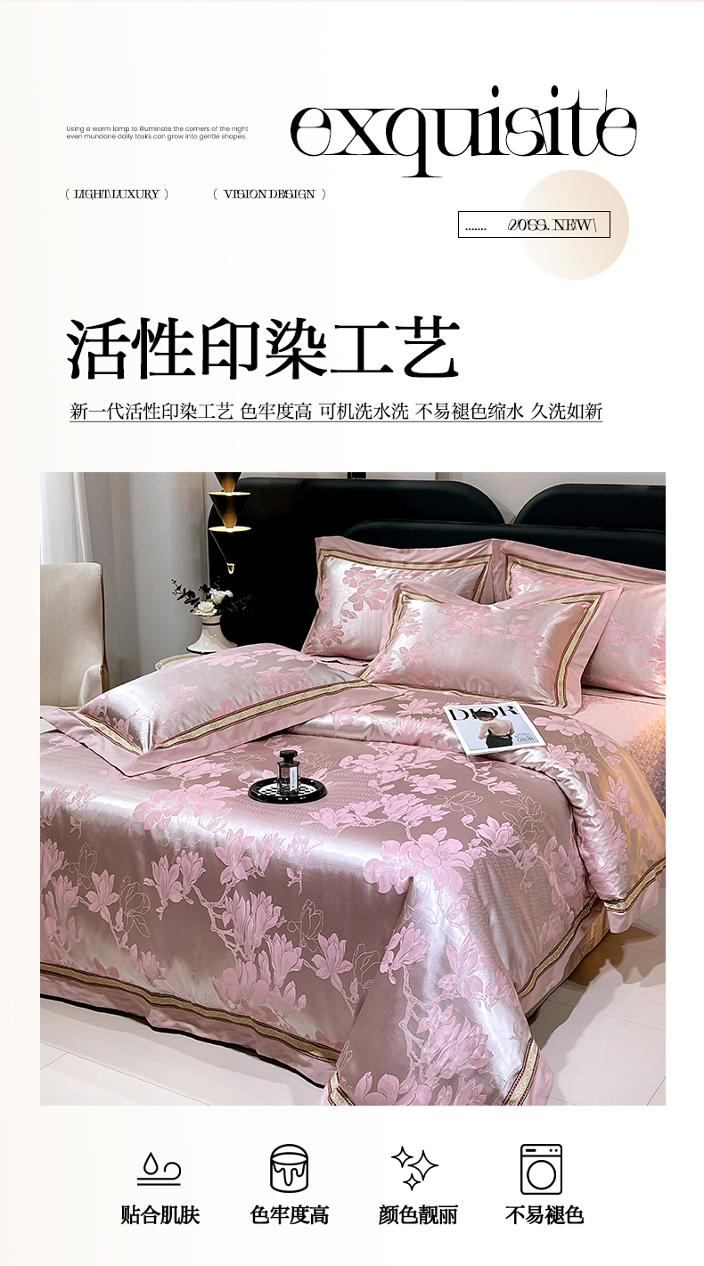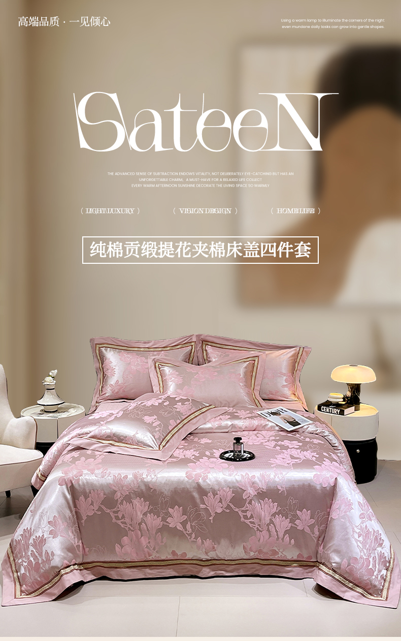 当前位置: 91家纺网 > 商品网购 > 床品套件 > 四件套 > 贡缎全棉四件套 > 小时代家纺 2025新款纯棉贡缎提花夹棉床盖四件套 华贵佳人-银粉