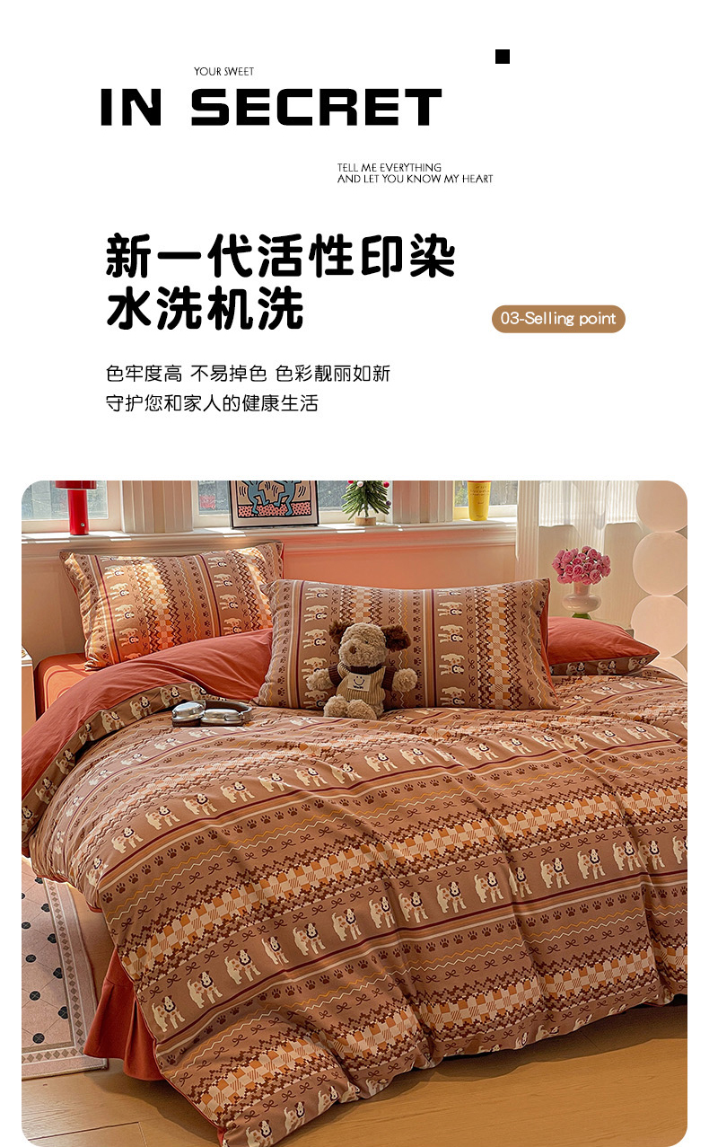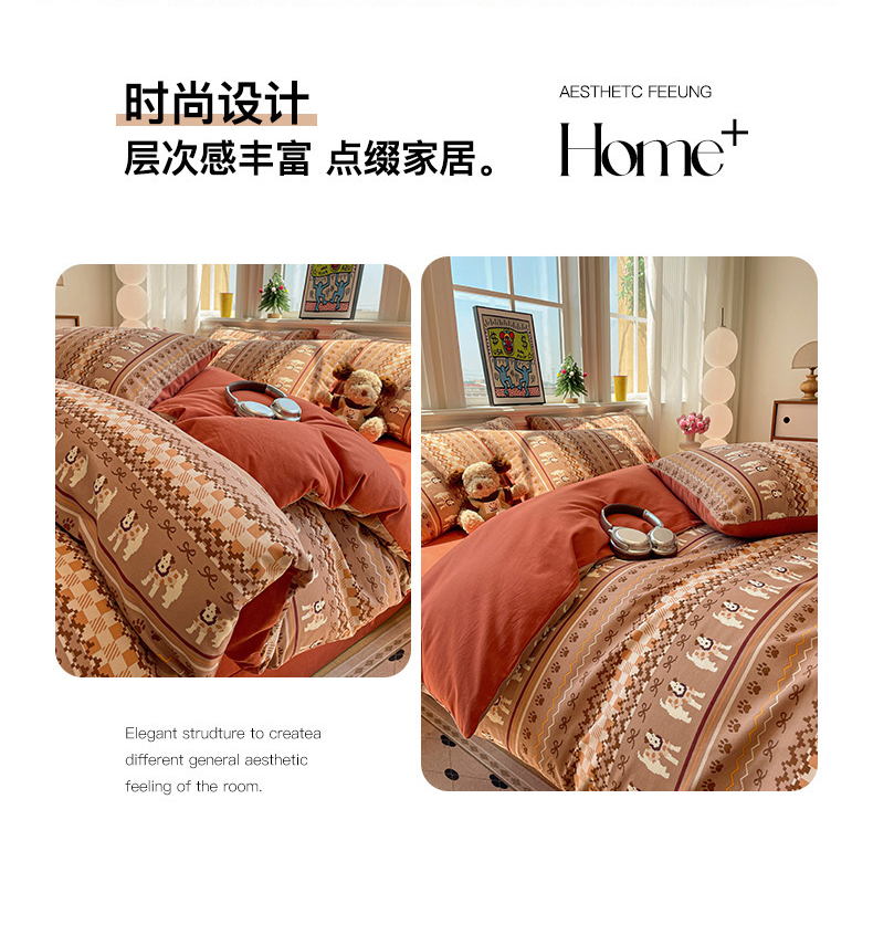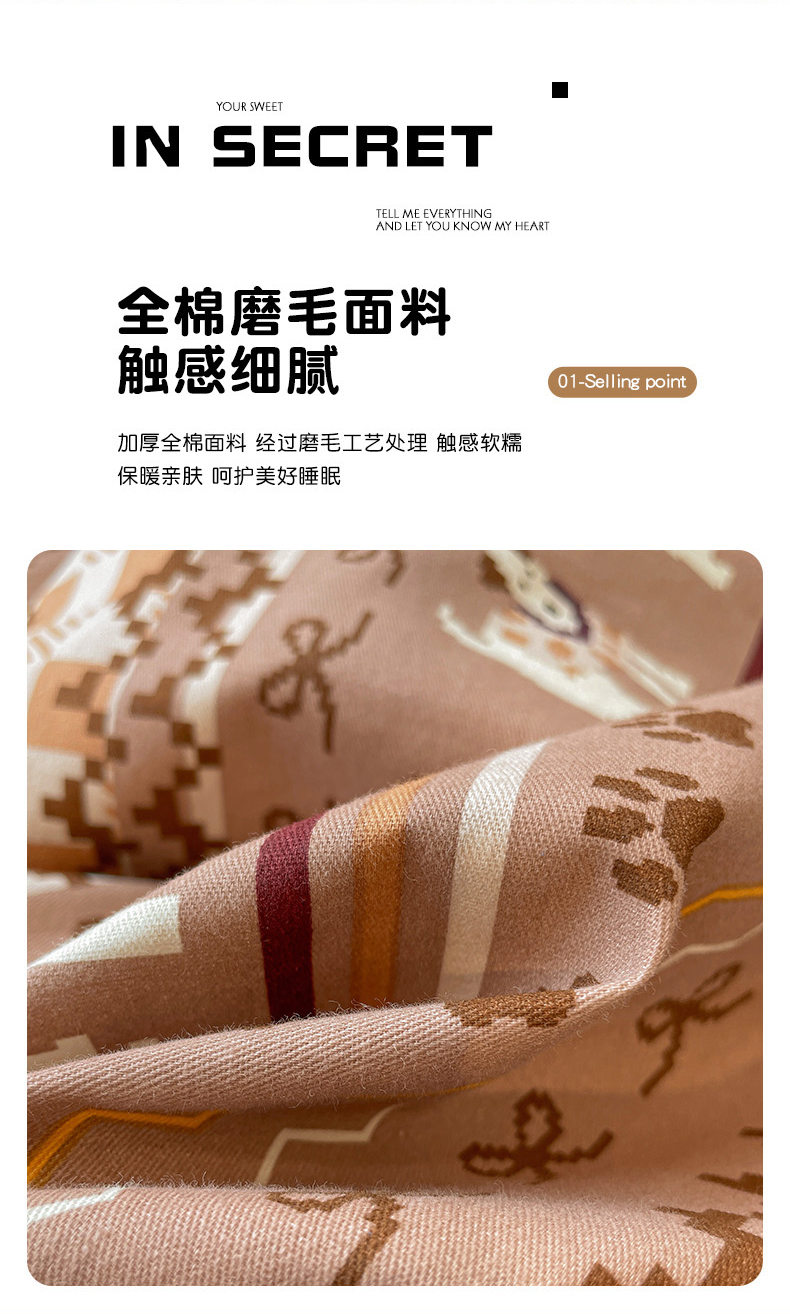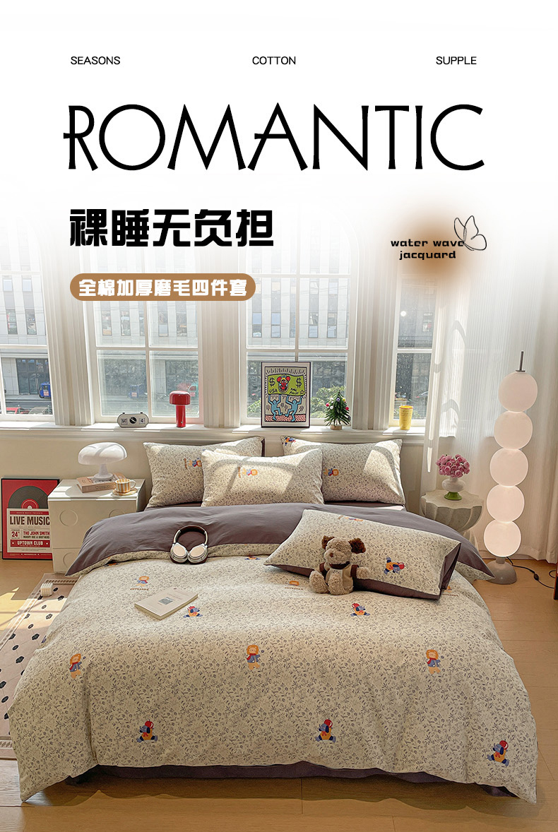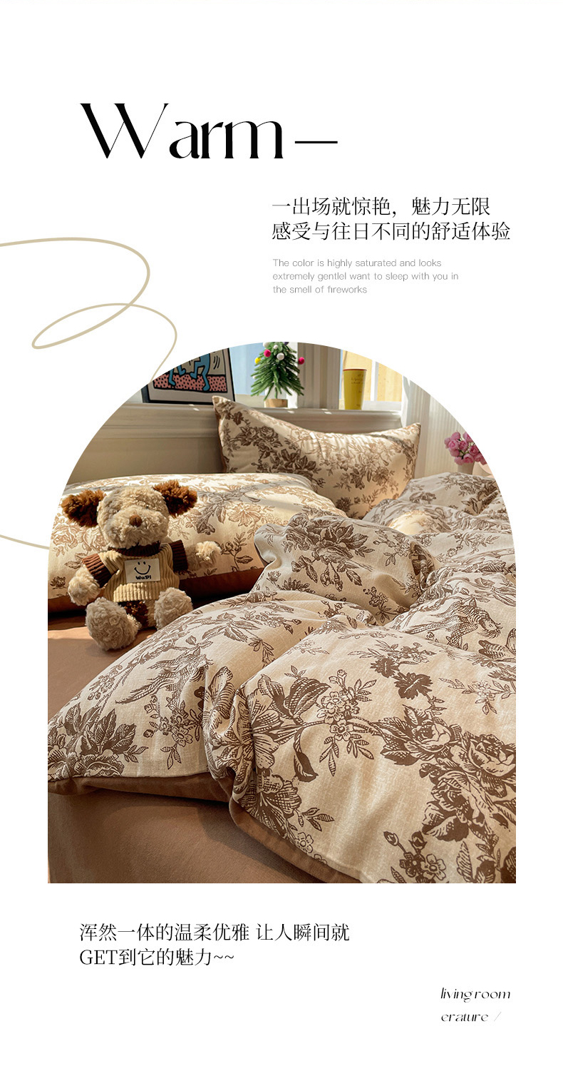 商品名称:(总)忆生活 2025新款秋冬复古风全棉加厚磨毛四件套