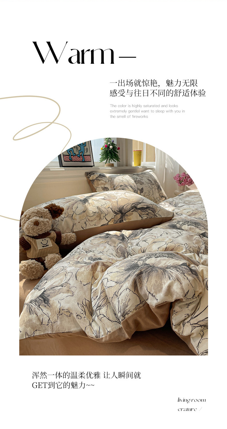 (总)忆生活 2025新款秋冬复古风全棉加厚磨毛四件套