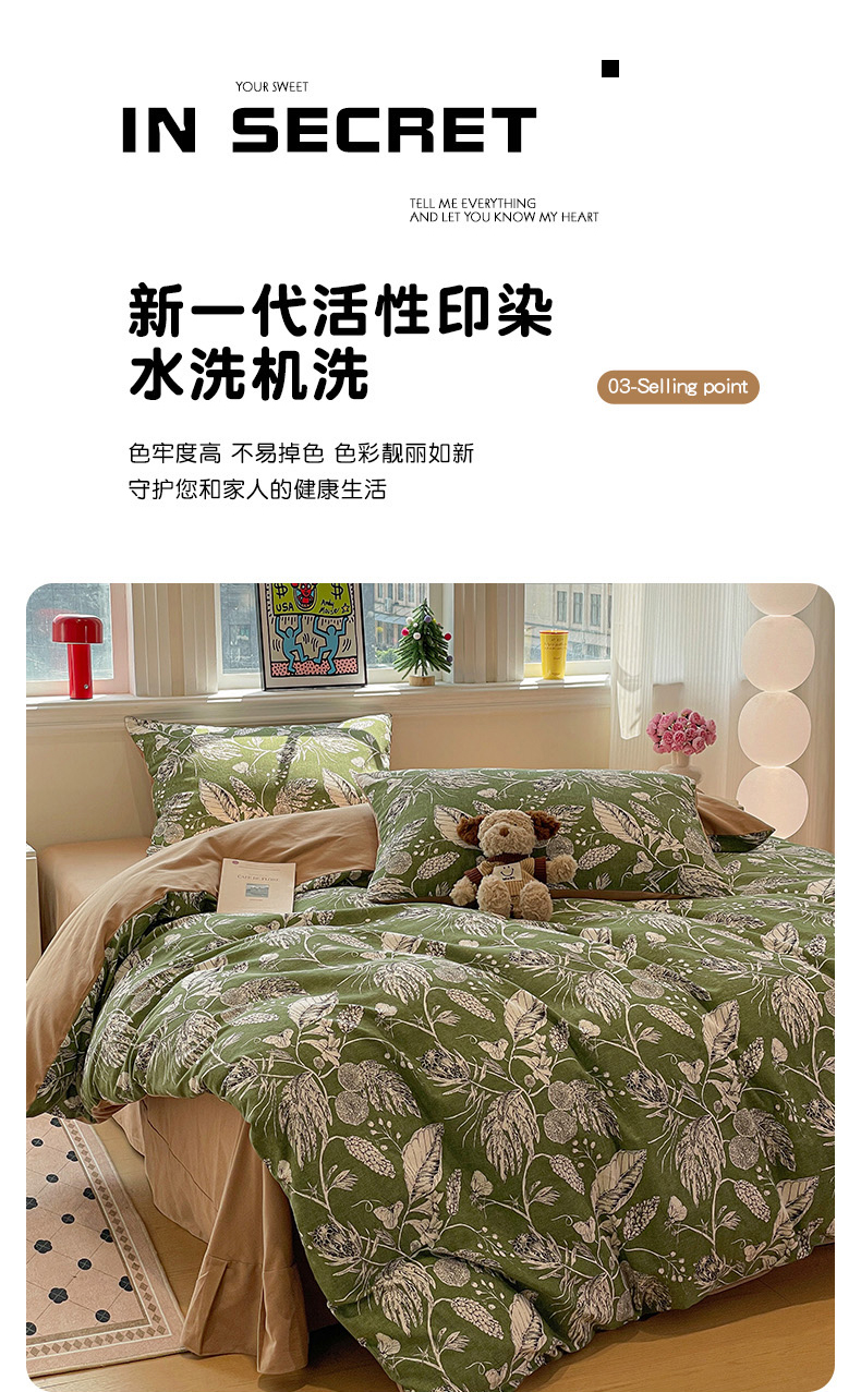 (总)忆生活 2025新款秋冬复古风全棉加厚磨毛四件套,简秋-咖,花汐,花颜-红,璃月-绿,漫枝-灰,漫枝-绿,骑士,芊墨,童年,玩伴,叶语,夜雨-咖