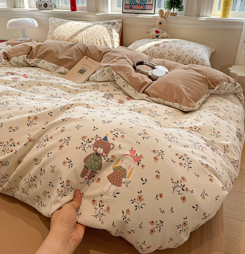 忆生活 2025新款秋冬复古风全棉加厚磨毛四件套 玩伴