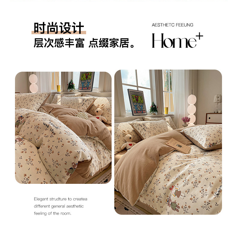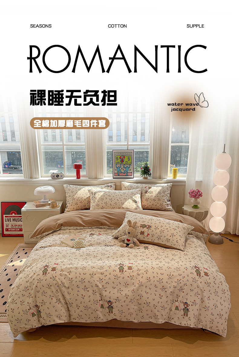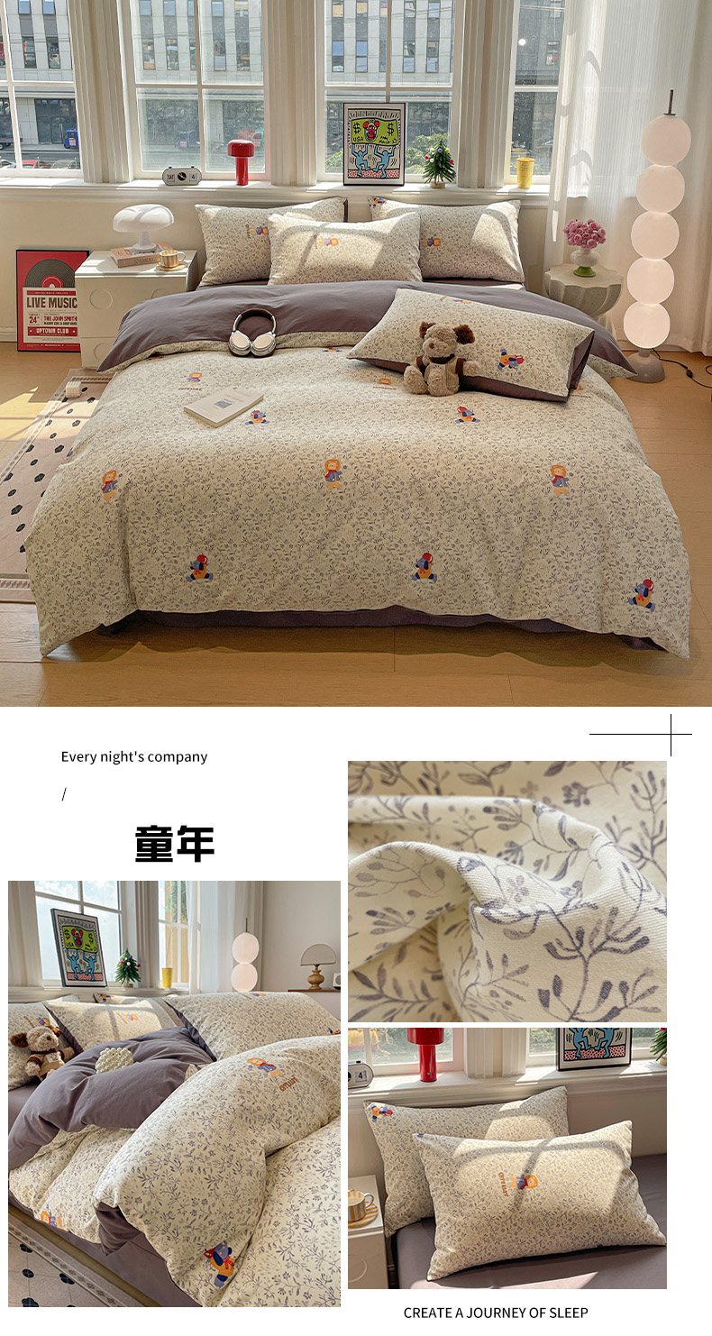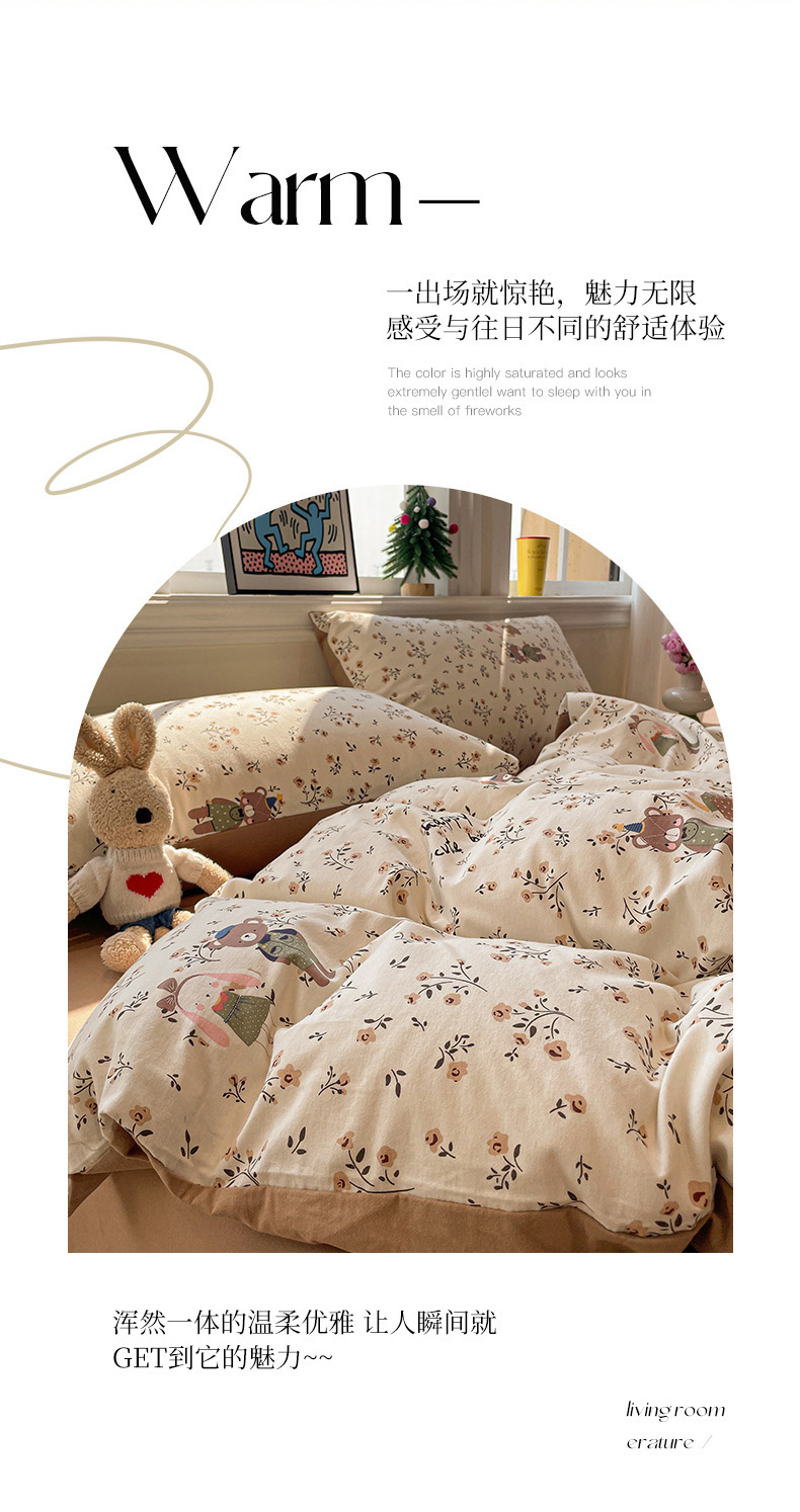 商品名称:忆生活 2025新款秋冬复古风全棉加厚磨毛四件套 玩伴