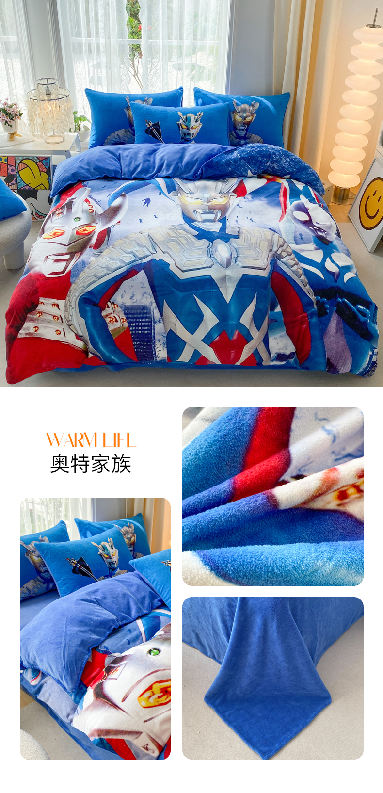 床上用品 > 被套 > 一电 2025新款双面牛奶绒被套单件150x200儿童加厚法兰珊瑚绒被罩200x230冬季-第一批 闪电奥特曼 (3)